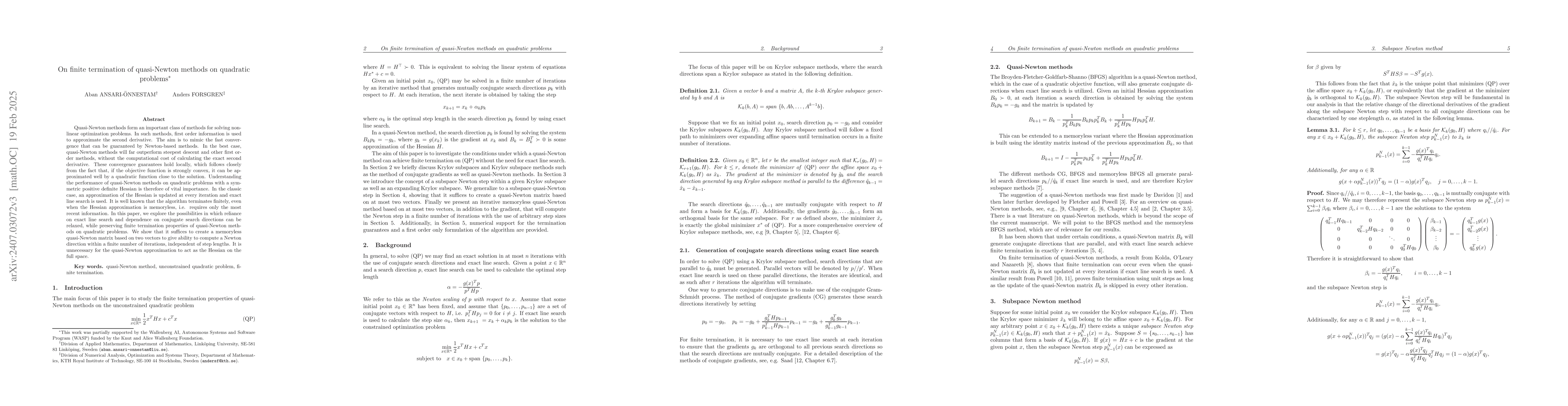 This paper investigates how quasi-Newton methods can achieve finite termination on quadratic optimization problems even when exact line search and conjugate search directions are not strictly adhered to, thereby enhancing their practical applicability. It focuses on preserving convergence guarantees under relaxed conditions.