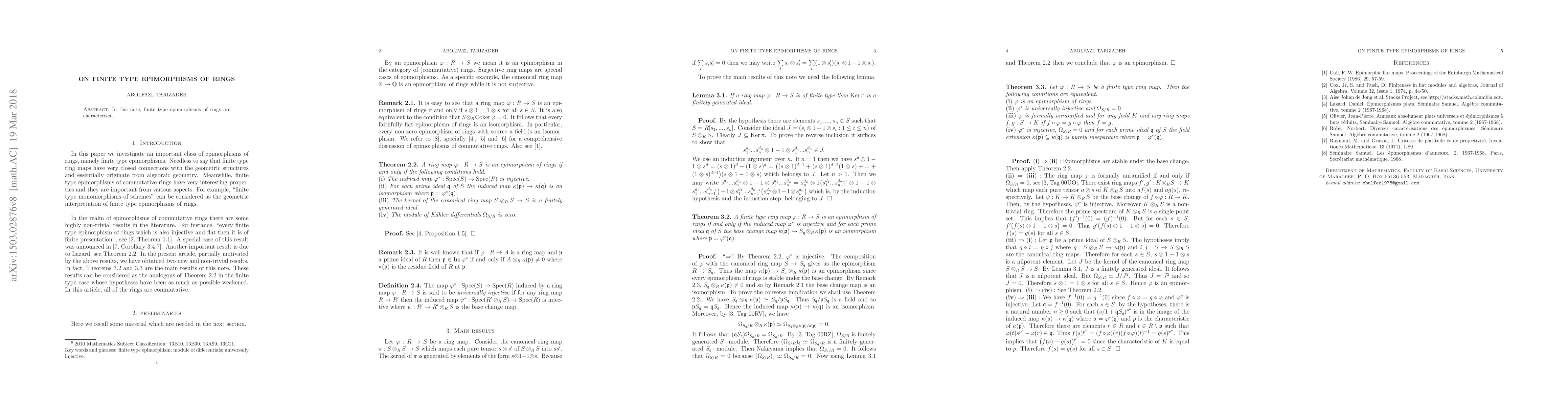This research identifies and characterizes finite type epimorphisms of rings, providing crucial insights into the structural properties of rings in abstract algebra.