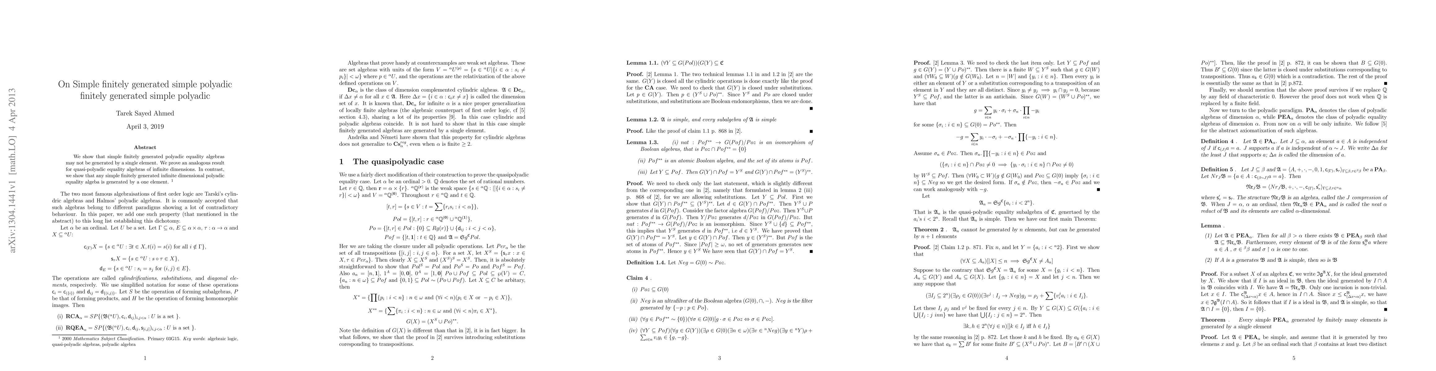 Extending a deep result of Andreka and Nemeti, we show that unlike the dimension complemented case, there are weak set quasi-polyadic simple algebras of dimension >1, that are finitely genertaed with more than one element, but cannot be generated with a single element. We give a contrasting result for polyadic agebras of infinite dimension.