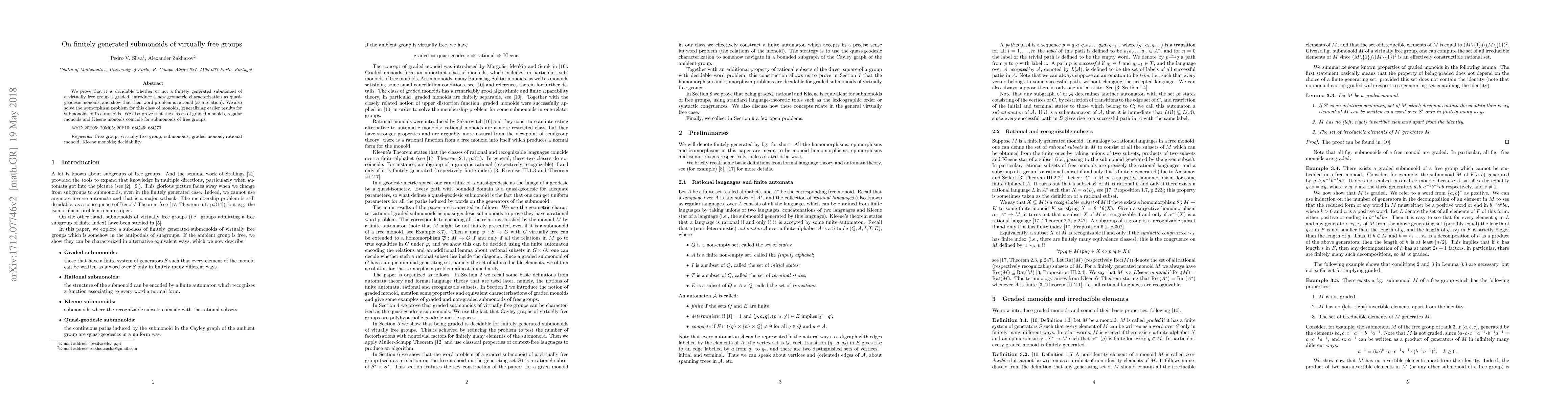 We prove that it is decidable whether or not a finitely generated submonoid of a virtually free group is graded, introduce a new geometric characterization as quasi-geodesic monoids, and show that their word problem is rational (as a relation). We also solve the isomorphism problem for this class of monoids, generalizing earlier results for submonoids of free monoids. We also prove that the classes of graded monoids, regular monoids and Kleene monoids coincide for submonoids of free groups.