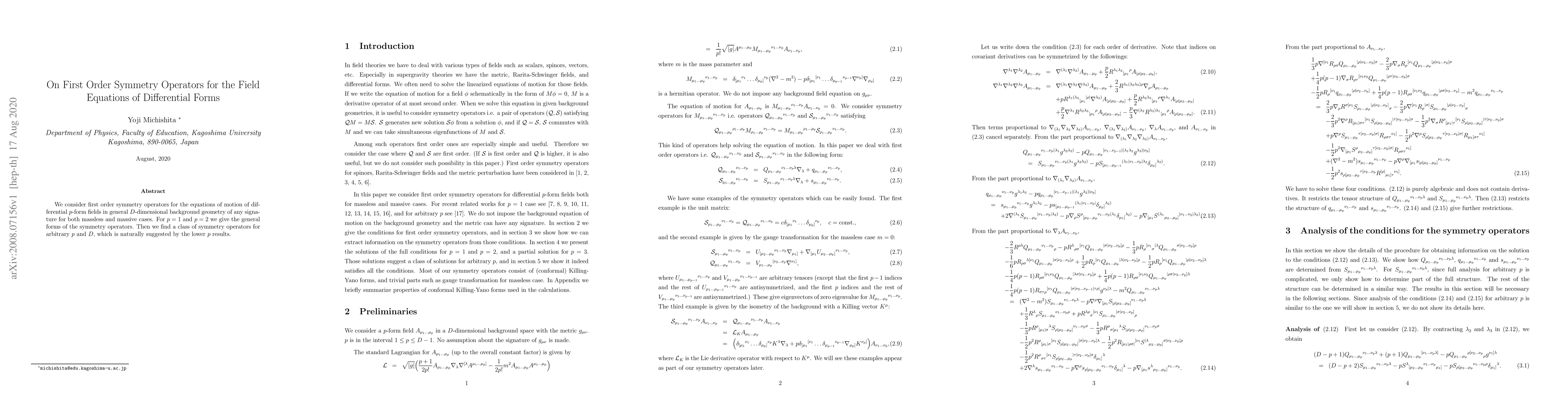 Researchers developed first order symmetry operators for differential form fields in general D-dimensional background geometry, with applications to massless and massive cases.