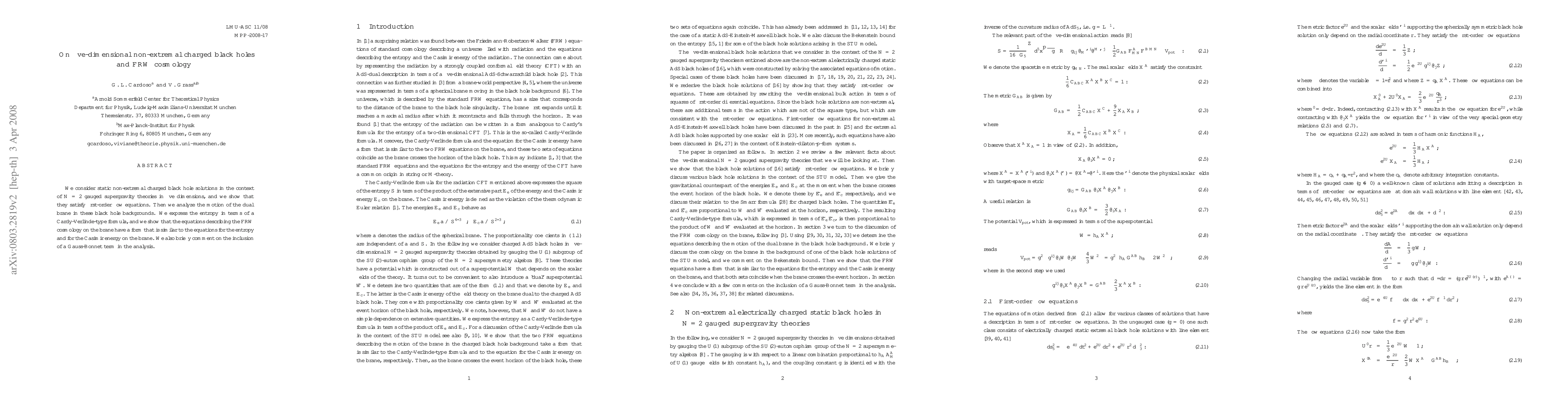We consider static non-extremal charged black hole solutions in the context of N=2 gauged supergravity theories in five dimensions, and we show that they satisfy first-order flow equations. Then we analyze the motion of the dual brane in these black hole backgrounds. We express the entropy in terms of a Cardy-Verlinde-type formula, and we show that the equations describing the FRW cosmology on the brane have a form that is similar to the equations for the entropy and for the Casimir energy on the brane. We also briefly comment on the inclusion of a Gauss-Bonnet term in the analysis.