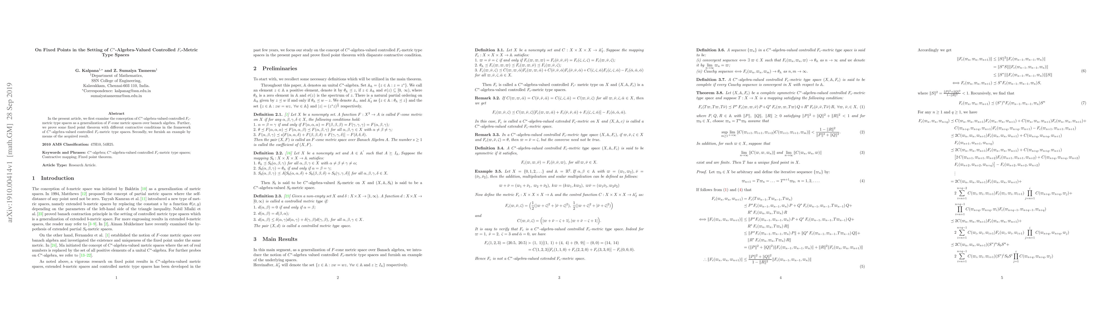 This paper explores the generalization of F-cone metric spaces using C*-algebra-valued controlled Fc-metric type spaces and proves several fixed point theorems under various contractive conditions within this framework. An illustrative example is provided to demonstrate the applicability of the results.