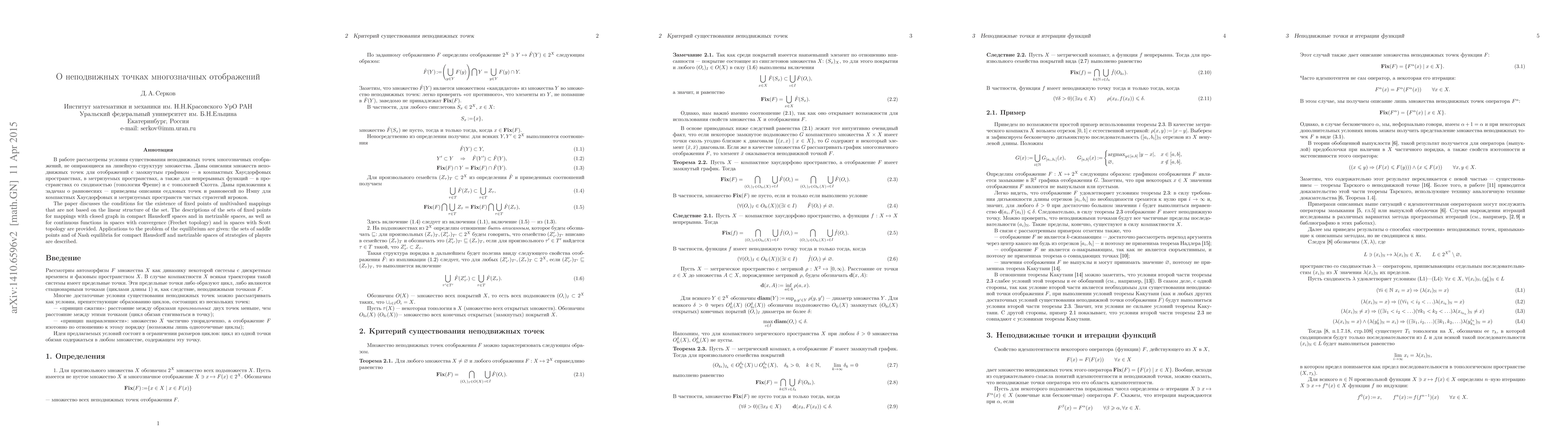The paper discusses the conditions for the existence of fixed points of multivalued mappings that are not based on the linear structure of the set. The descriptions for the sets of fixed points for mappings with closed graph in compact Hausdorff spaces and in metrizable spaces, as well as for continuous functions in spaces with convergence (Frechet topology) and in spaces with Scott topology are provided. Applications to the problem of the equilibrium are given: the sets of saddle points and of Nash equilibria for compact Hausdorff and metrizable spaces of strategies of players are described.
