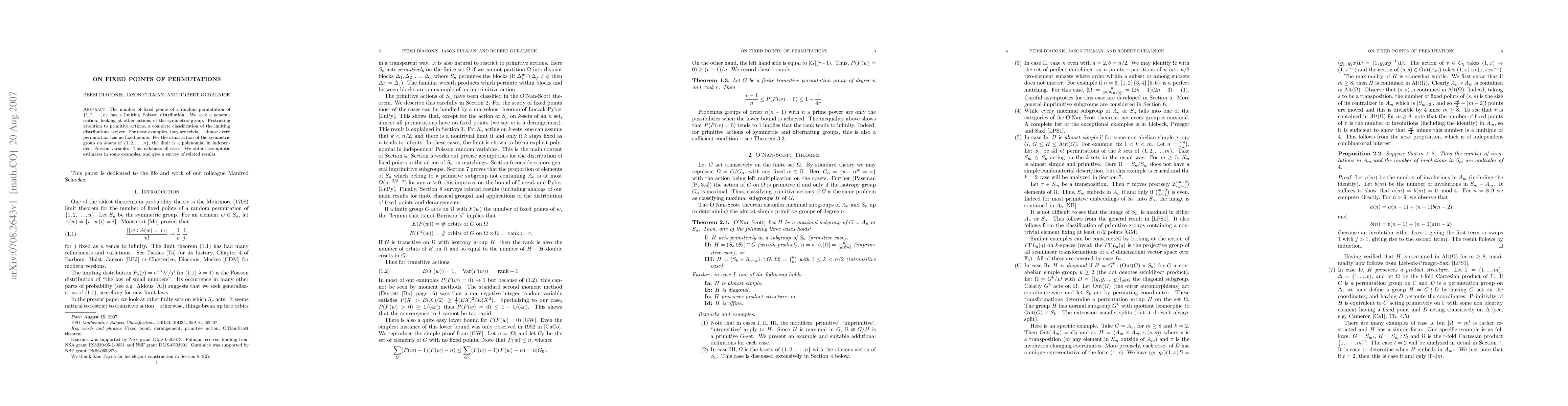 The research explores fixed points of permutations, generalizing the limiting Poisson distribution of fixed points in random permutations to other actions of the symmetric group, focusing on primitive actions.