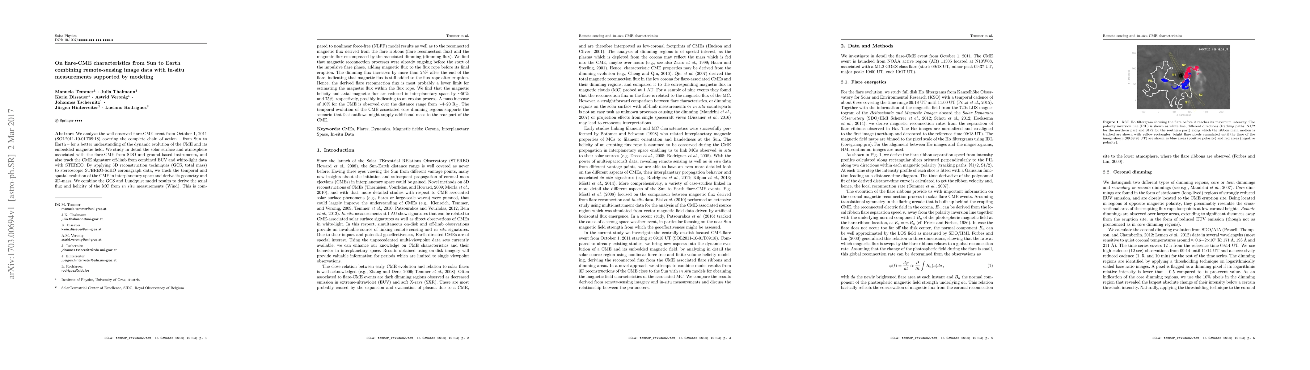 This study combines remote-sensing data with in-situ measurements to analyze the October 1, 2011, flare-CME event, revealing that magnetic reconnection processes continued post-eruption, suggesting an ongoing flux addition. The CME's magnetic helicity and axial flux decreased significantly in interplanetary space, indicating erosion, while its mass increased by 10% over the observed range.