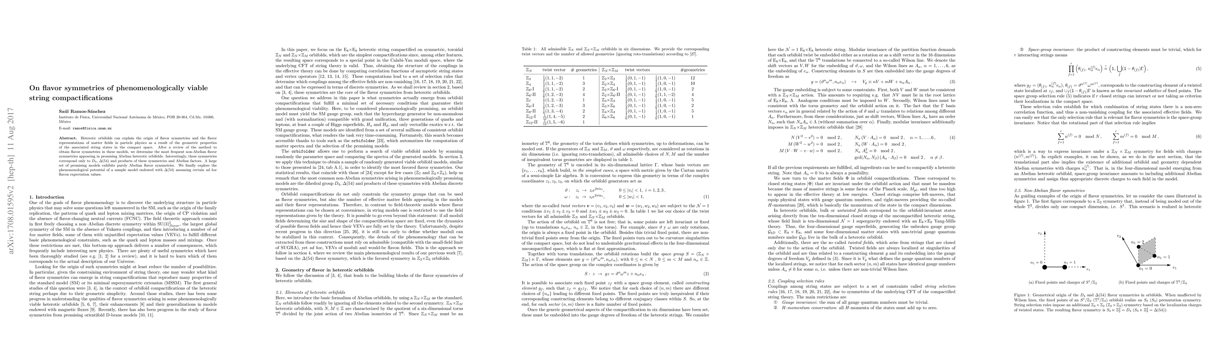 This paper explores how heterotic orbifolds can elucidate flavor symmetries in string compactifications, identifying D_4, Delta(54), and their products as the most common non-Abelian symmetries. It also examines a sample model with Delta(54) symmetry and its phenomenological implications.