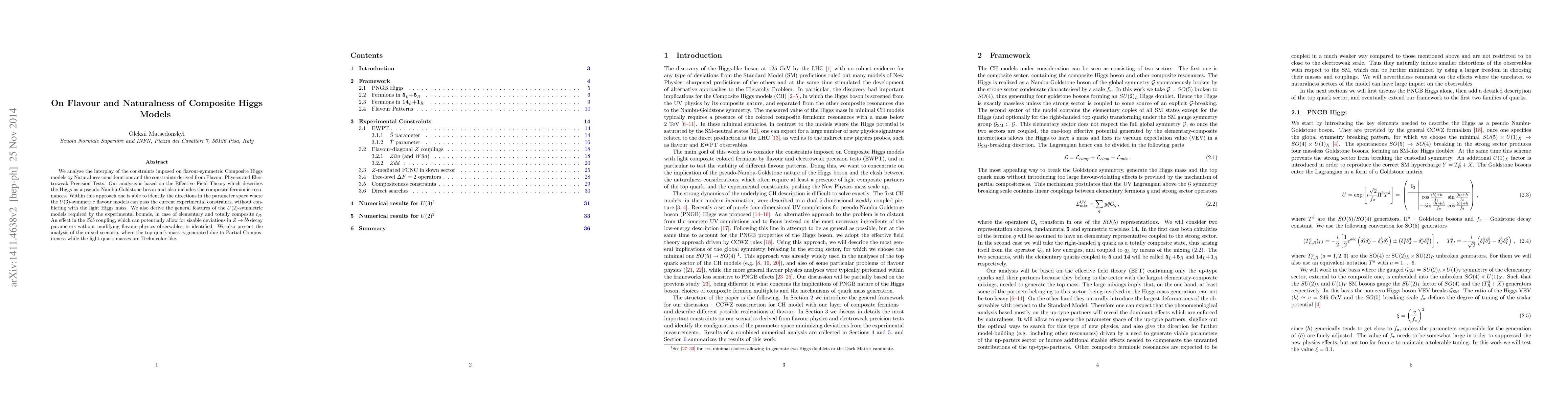We analyse the interplay of the constraints imposed on flavour-symmetric Composite Higgs models by Naturalness considerations and the constraints derived from Flavour Physics and Electroweak Precision Tests. Our analysis is based on the Effective Field Theory which describes the Higgs as a pseudo-Nambu-Goldstone boson and also includes the composite fermionic resonances. Within this approach one is able to identify the directions in the parameter space where the $U(3)$-symmetric flavour models can pass the current experimental constraints, without conflicting with the light Higgs mass. We also derive the general features of the $U(2)$-symmetric models required by the experimental bounds, in case of elementary and totally composite $t_R$. An effect in the $Z \bar b b$ coupling, which can potentially allow for sizable deviations in $Z \to \bar b b$ decay parameters without modifying flavour physics observables, is identified. We also present an analysis of the mixed scenario, where the top quark mass is generated due to Partial Compositeness while the light quark masses are Technicolor-like.