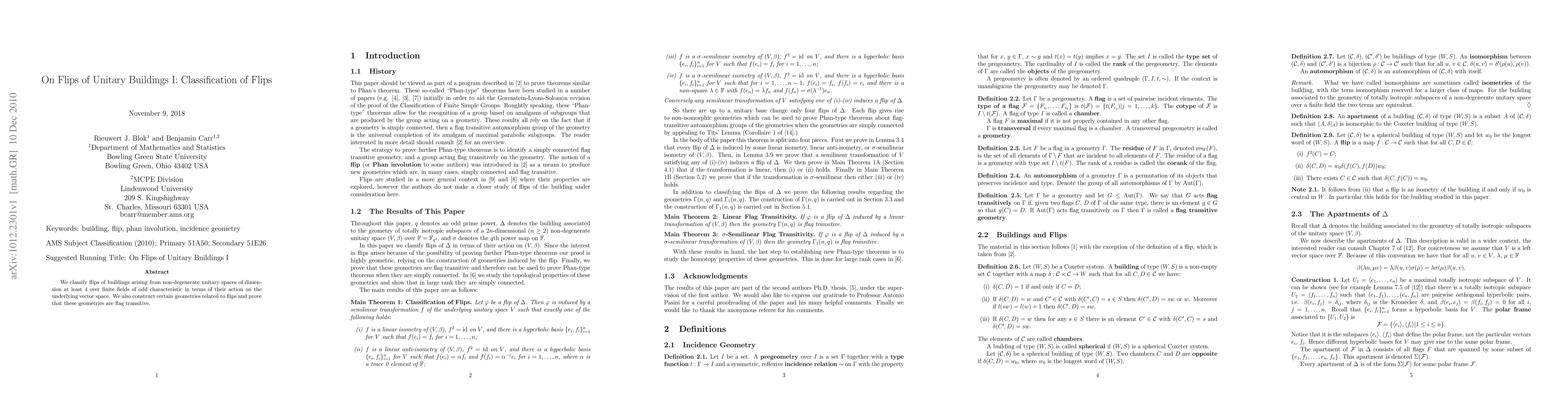 This paper classifies flips of unitary buildings over finite fields of odd characteristic in terms of their action on the underlying vector space, proving that related geometries are flag transitive.