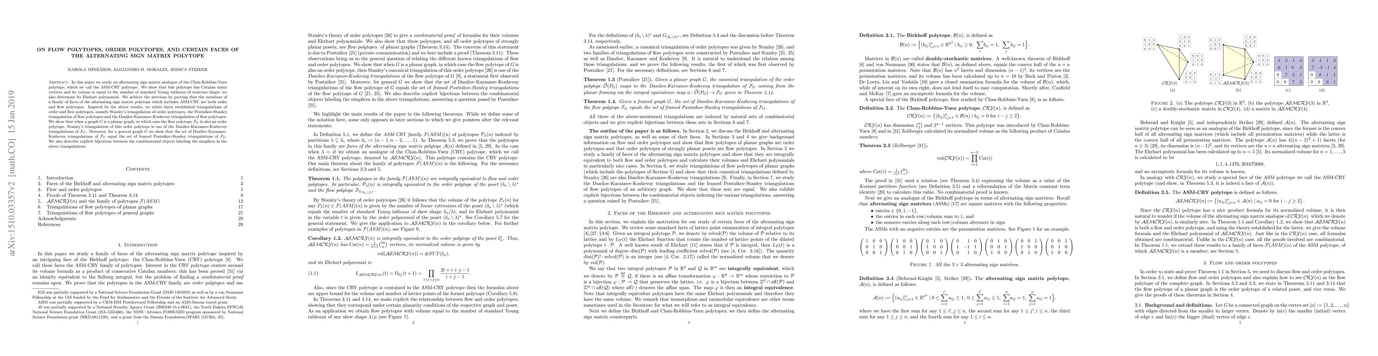 This paper explores the ASM-CRY polytope, an analogue of the Chan-Robbins-Yuen polytope, revealing it has Catalan vertices and a volume equal to the number of standard Young tableaux. It links various triangulations of order and flow polytopes and demonstrates their connections through specific planar and general graph structures.