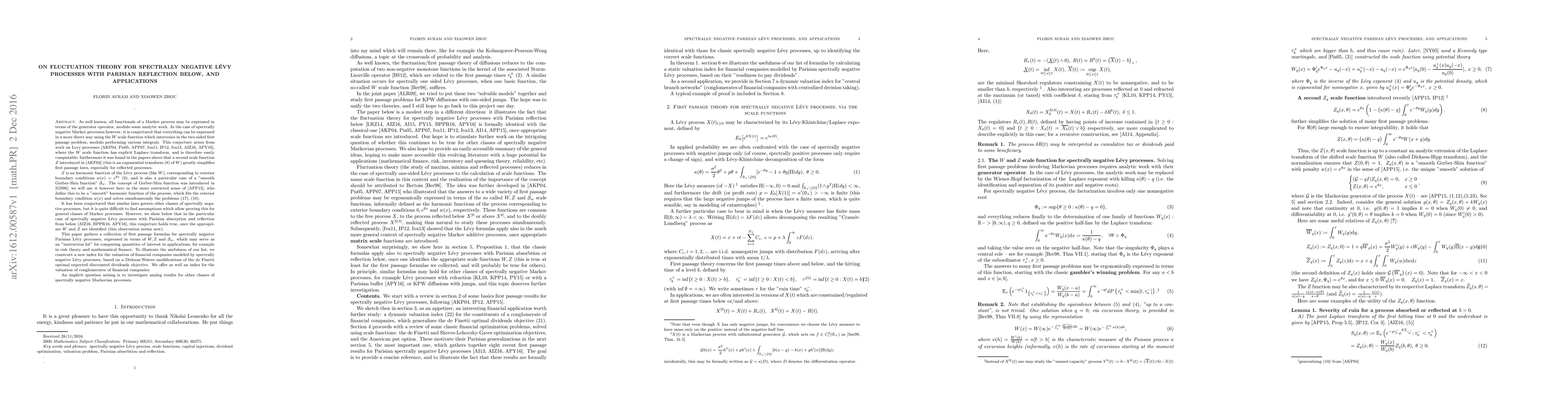 As well known, all functionals of a Markov process may be expressed in terms of the generator operator, modulo some analytic work. In the case of spectrally negative Markov processes however, it is conjectured that everything can be expressed in a more direct way using the $W$ scale function which intervenes in the two-sided first passage problem, modulo performing various integrals. This conjecture arises from work on Levy processes \cite{AKP,Pispot,APP,Iva,IP, ivanovs2013potential,AIZ,APY}, where the $W$ scale function has explicit Laplace transform, and is therefore easily computable; furthermore it was found in the papers above that a second scale function $Z$ introduced in \cite{AKP} greatly simplifies first passage laws, especially for reflected processes. This paper gathers a collection of first passage formulas for spectrally negative Parisian L\'evy processes, expressed in terms of $W,Z$ which may serve as an "instruction kit" for computing quantities of interest in applications, for example in risk theory and mathematical finance. To illustrate the usefulness of our list, we construct a new index for the valuation of financial companies modeled by spectrally negative L\'evy processes, based on a Dickson-Waters modifications of the de Finetti optimal expected discounted dividends objective. We offer as well an index for the valuation of conglomerates of financial companies. An implicit question arising is to investigate analog results for other classes of spectrally negative Markovian processes.