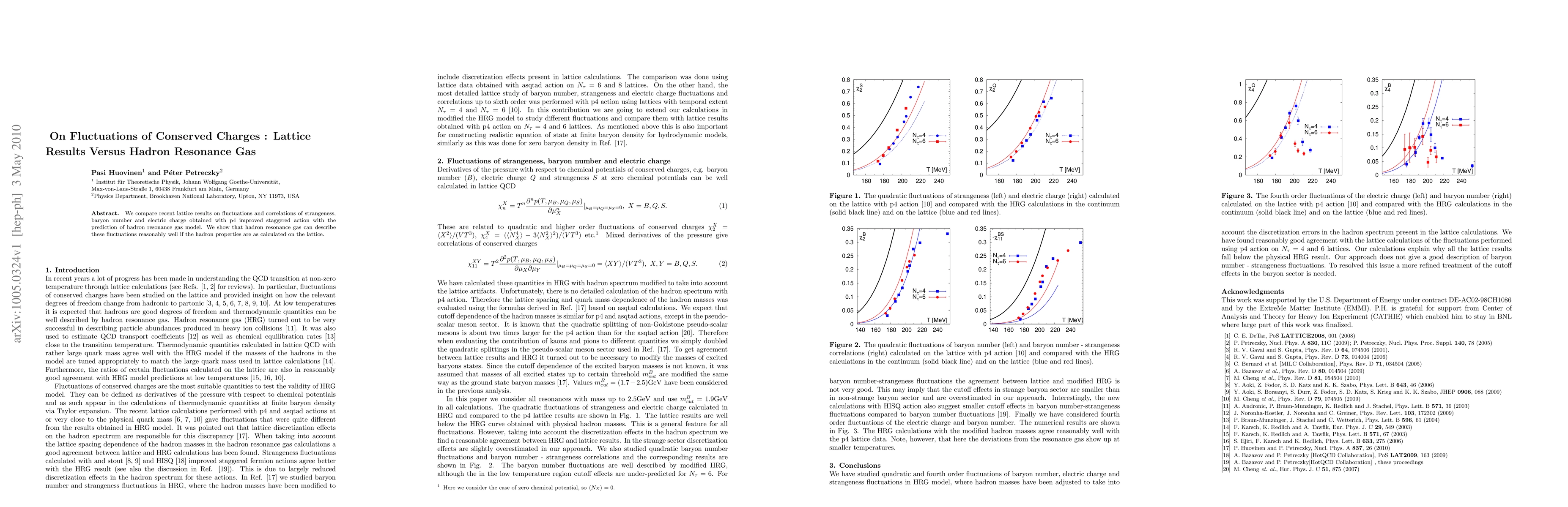 Summary: This study compares lattice QCD results for fluctuations in conserved charges with predictions from the hadron resonance gas model, demonstrating that the model can reasonably describe these fluctuations when matched with lattice-calculated hadron properties.