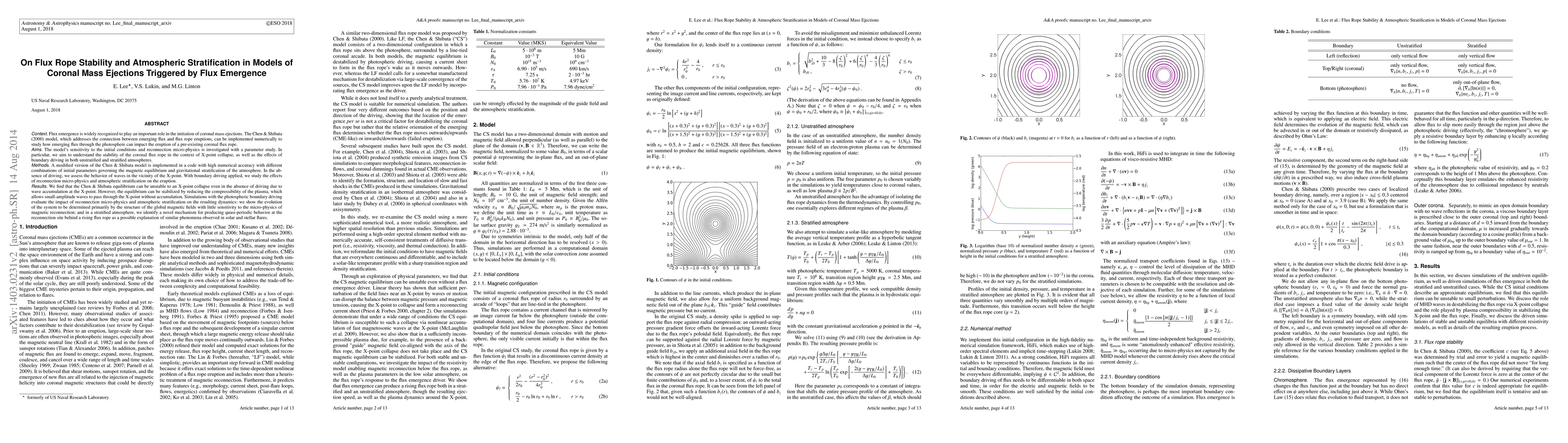 This paper explores the stability of coronal flux ropes during coronal mass ejections initiated by flux emergence, using the Chen-Shibata model. It finds that X-point collapse can destabilize the equilibrium even without boundary driving, but can be mitigated by reducing plasma compressibility. Simulations with boundary driving reveal that magnetic reconnection micro-physics has minor effects, while atmospheric stratification introduces a mechanism for quasi-periodic reconnection behaviors.