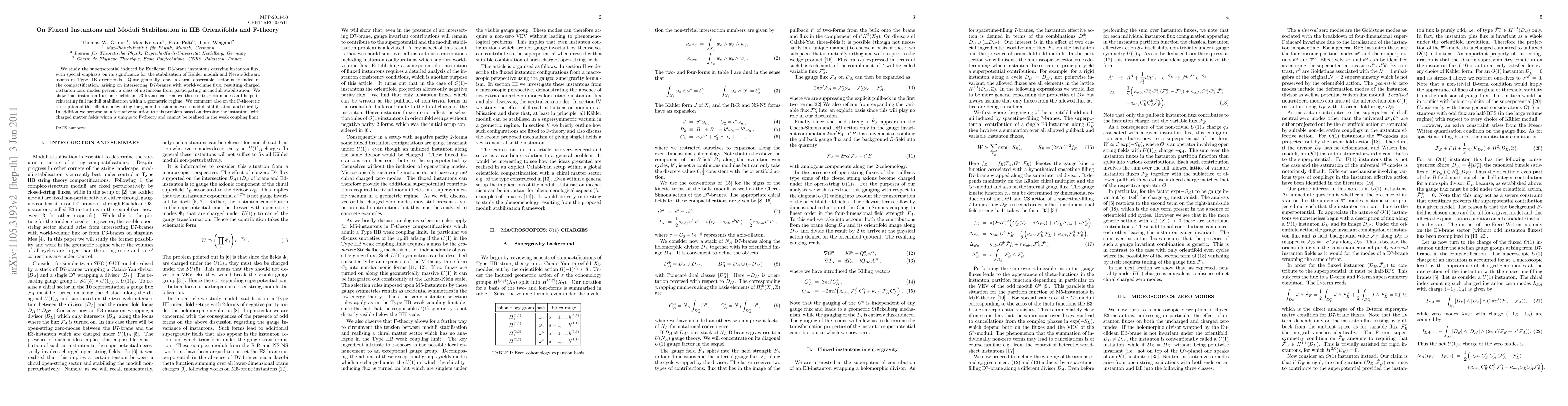 This paper investigates the role of instanton flux in stabilising Kähler moduli and axions in Type IIB orientifolds, revealing that Euclidean D3-brane instantons can remove extra charged zero modes, reinstating full moduli stabilisation. It also discusses F-theory's unique approach to this problem via dressed instantons.