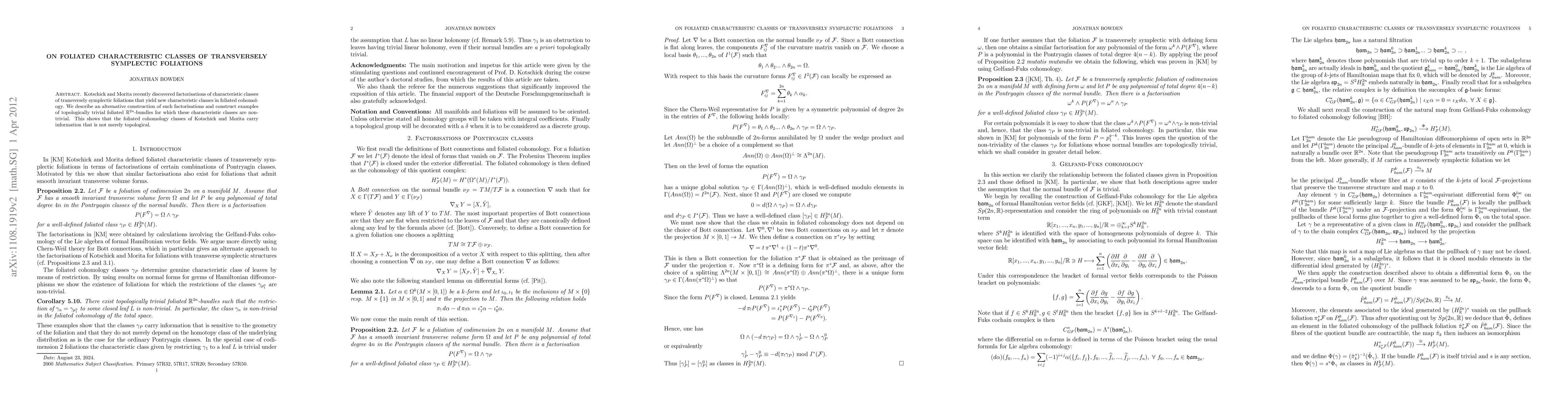 The paper constructs alternative factorizations for characteristic classes of transversally symplectic foliations, providing a new approach to Kotschick and Morita's discovery. It also demonstrates examples of topologically trivial foliated vector bundles where these characteristic classes are non-trivial, indicating that the foliated cohomology classes contain non-topological information.
