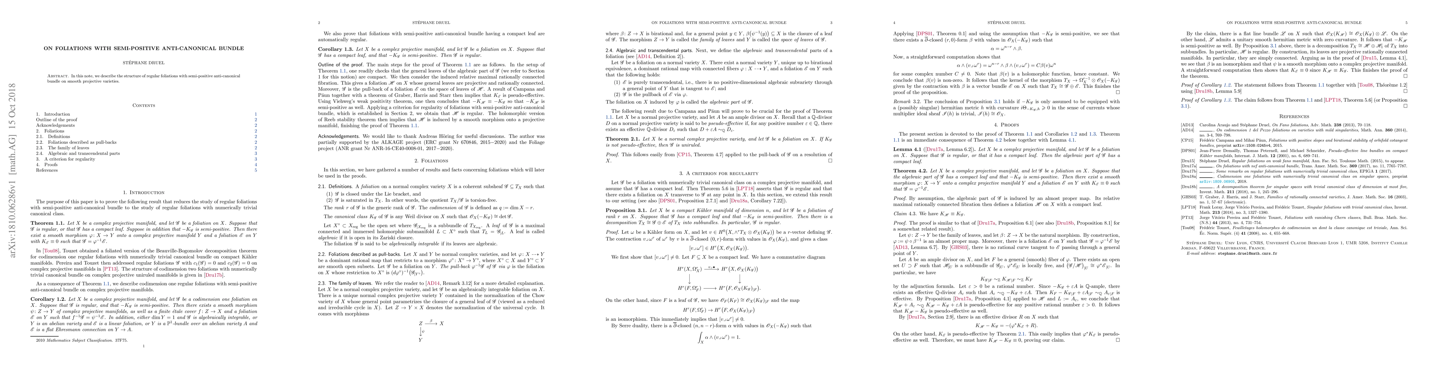 This paper investigates the structural characteristics of regular foliations on smooth projective varieties where the anti-canonical bundle exhibits semi-positivity. It aims to elucidate the underlying geometric properties of such foliations.