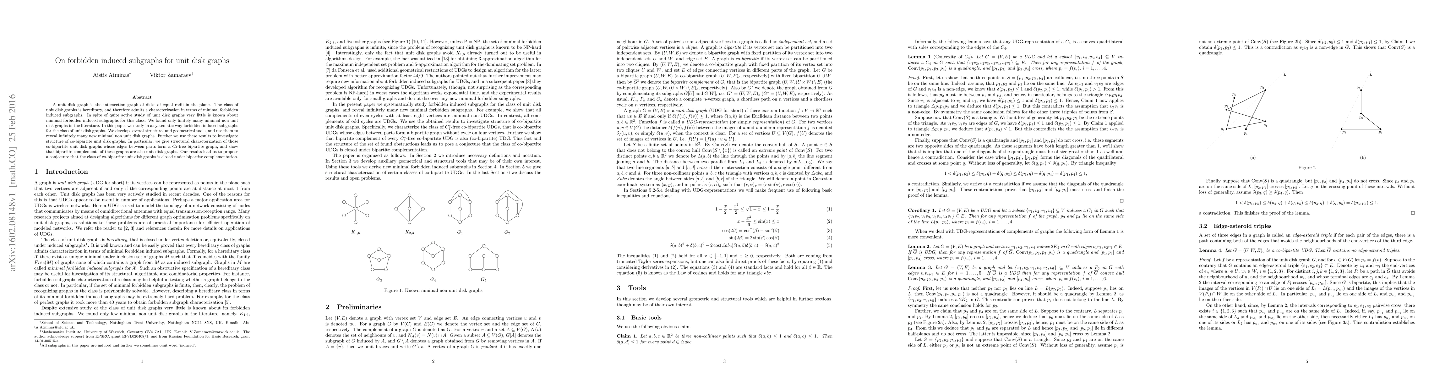 This paper systematically investigates forbidden induced subgraphs for unit disk graphs, revealing infinitely many new minimal non unit disk graphs, and explores the structure of co-bipartite unit disk graphs, proposing a conjecture that their bipartite complements are also unit disk graphs.
