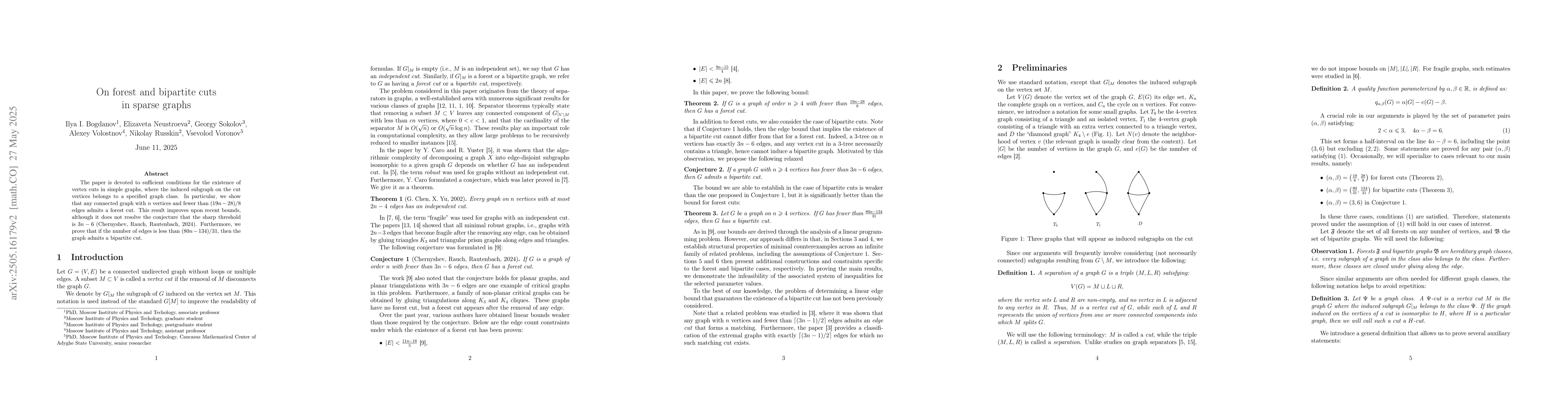 The paper presents novel edge count thresholds for the existence of forest and bipartite cuts in sparse graphs, improving upon previous bounds.