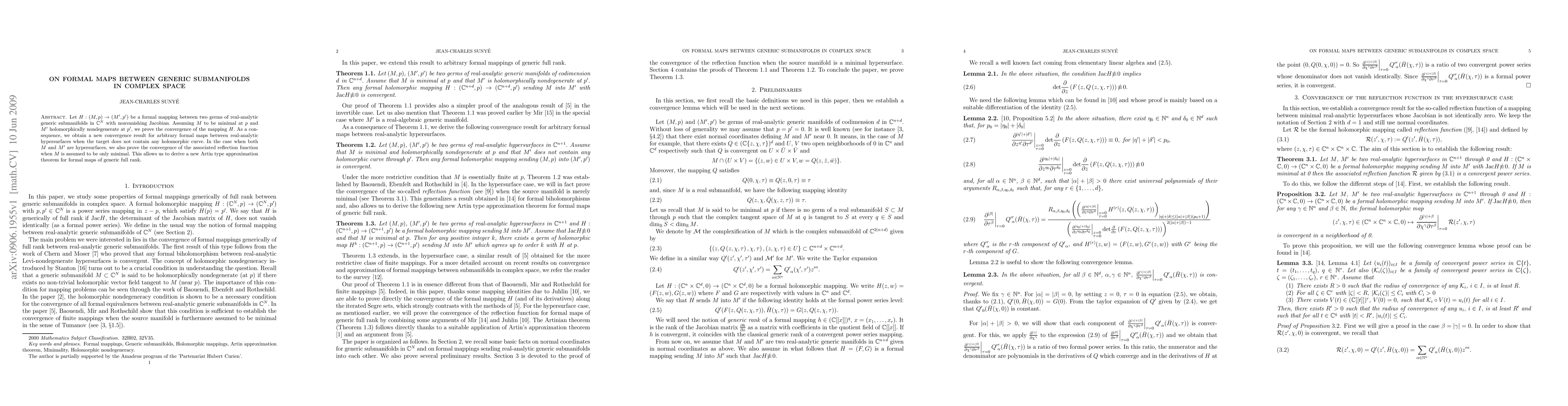 The paper proves the convergence of formal maps between generic submanifolds in complex space under certain conditions, leading to new results on formal maps between real-analytic hypersurfaces and an improved Artin type approximation theorem for full-rank maps.