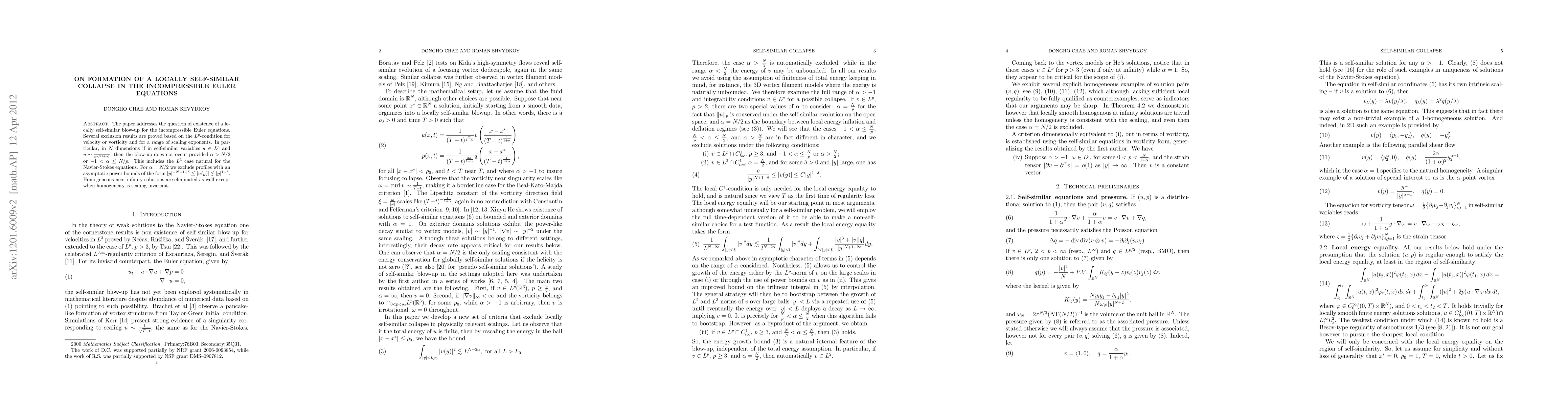 The paper investigates whether incompressible Euler equations can exhibit a locally self-similar collapse, finding that blow-up does not occur for certain velocity or vorticity $L^p$-conditions and scaling exponents.