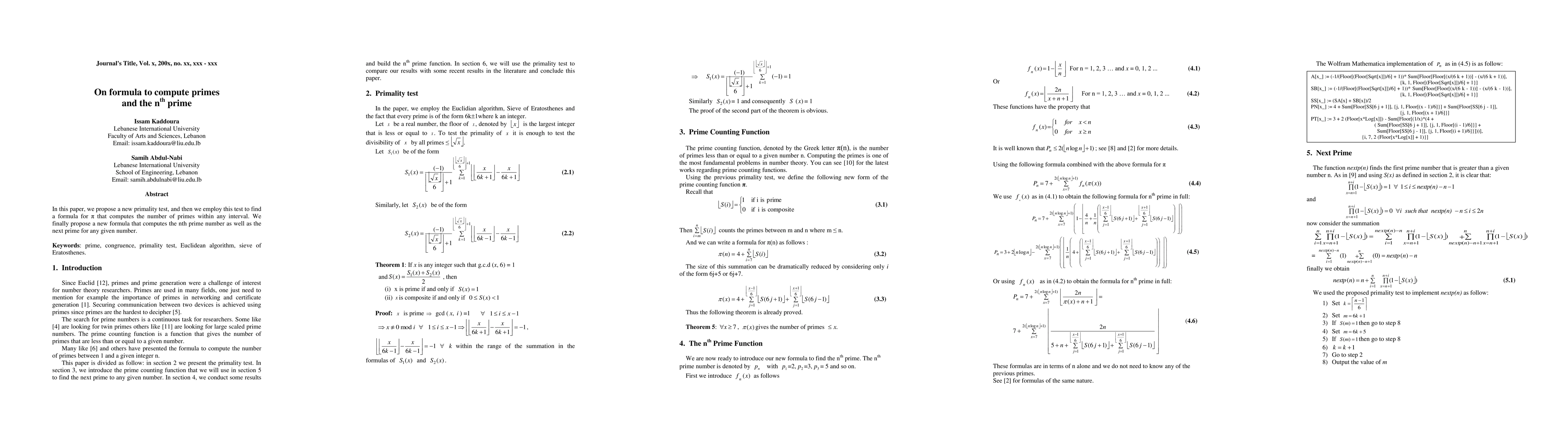 Researchers propose a new formula to compute the nth prime number and the next prime for any given number, using a novel primality test.