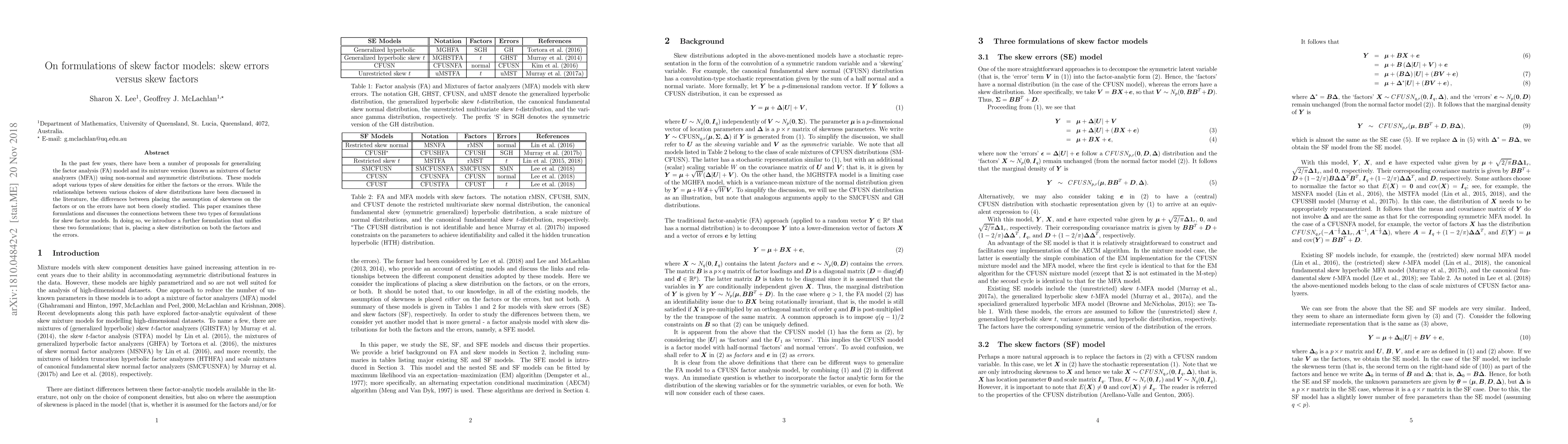 In the past few years, there have been a number of proposals for generalizing the factor analysis (FA) model and its mixture version (known as mixtures of factor analyzers (MFA)) using non-normal and asymmetric distributions. These models adopt various types of skew densities for either the factors or the errors. While the relationships between various choices of skew distributions have been discussed in the literature, the differences between placing the assumption of skewness on the factors or on the errors have not been closely studied. This paper examines these formulations and discusses the connections between these two types of formulations for skew factor models. In doing so, we introduce a further formulation that unifies these two formulations; that is, placing a skew distribution on both the factors and the errors.