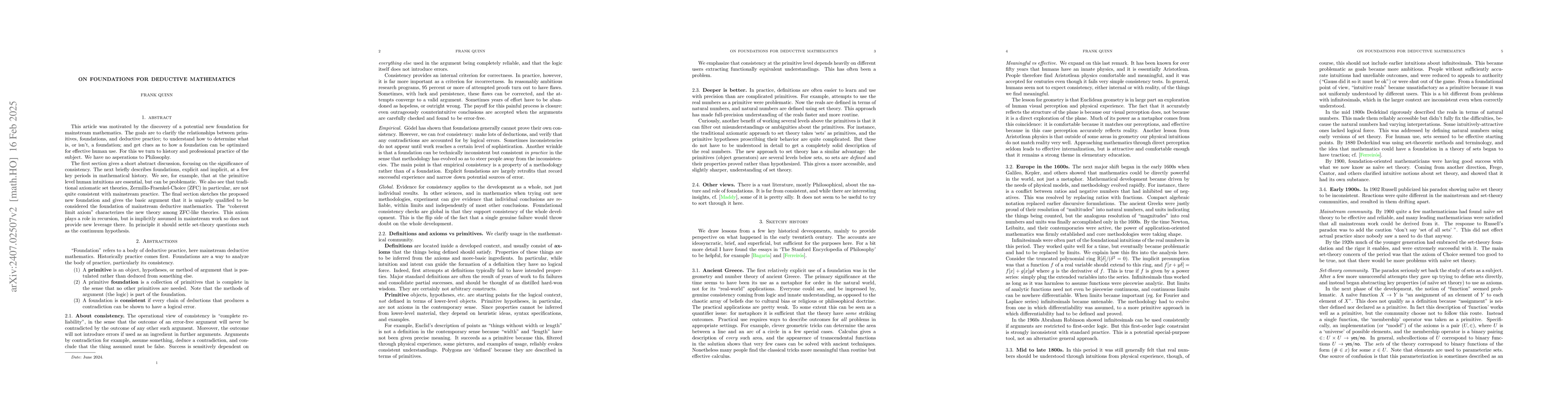 This paper proposes a new foundation for mainstream mathematics, emphasizing the importance of consistency and critiquing traditional axiomatic set theories like ZFC. It introduces the "coherent limit axiom" as a distinctive element that could potentially resolve set-theory questions like the continuum hypothesis.