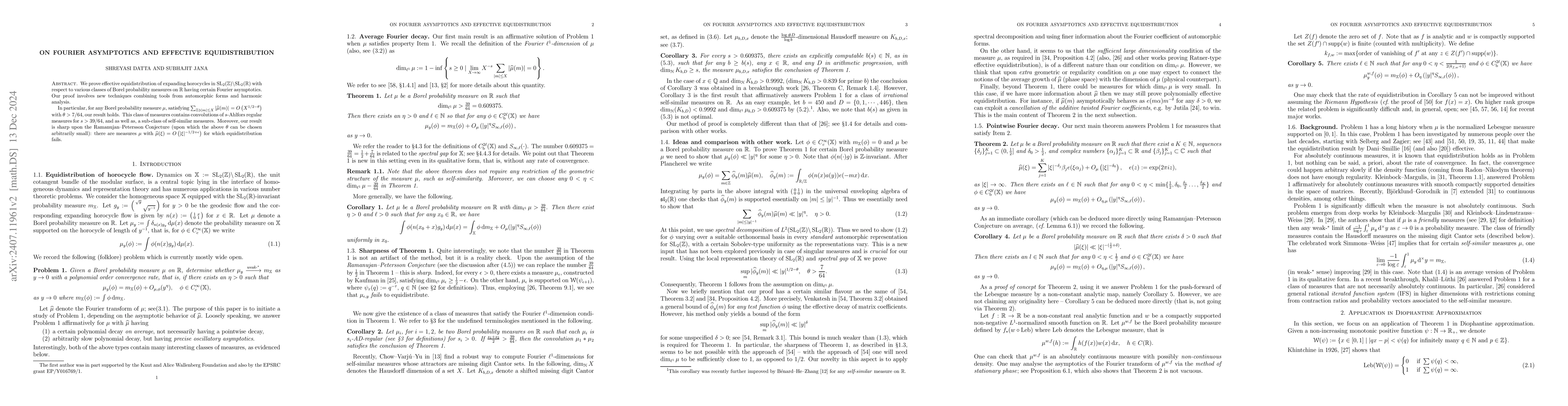 This paper proves effective equidistribution of expanding horocycles in $\mathrm{SL}_2(\mathbb{Z})\backslash\mathrm{SL}_2(\mathbb{R})$, leveraging new methods from automorphic forms and harmonic analysis. It notably improves upon existing results by addressing measures on shifted missing digit Cantor sets with Hausdorff dimensions as low as 0.61.