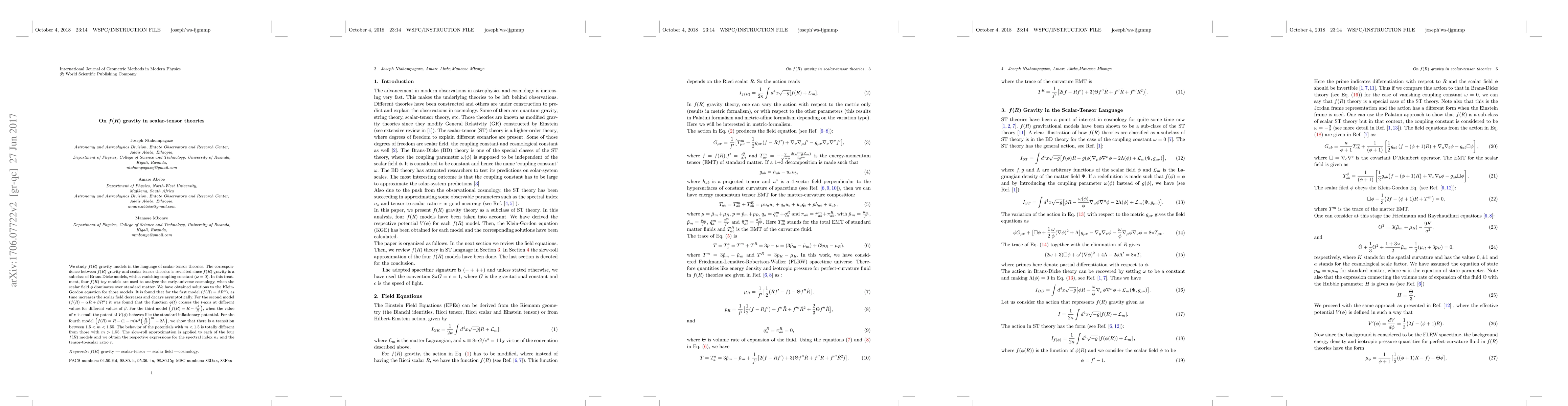 coupling constant ($\omega=0$). In this treatment, four $f(R)$ toy models are