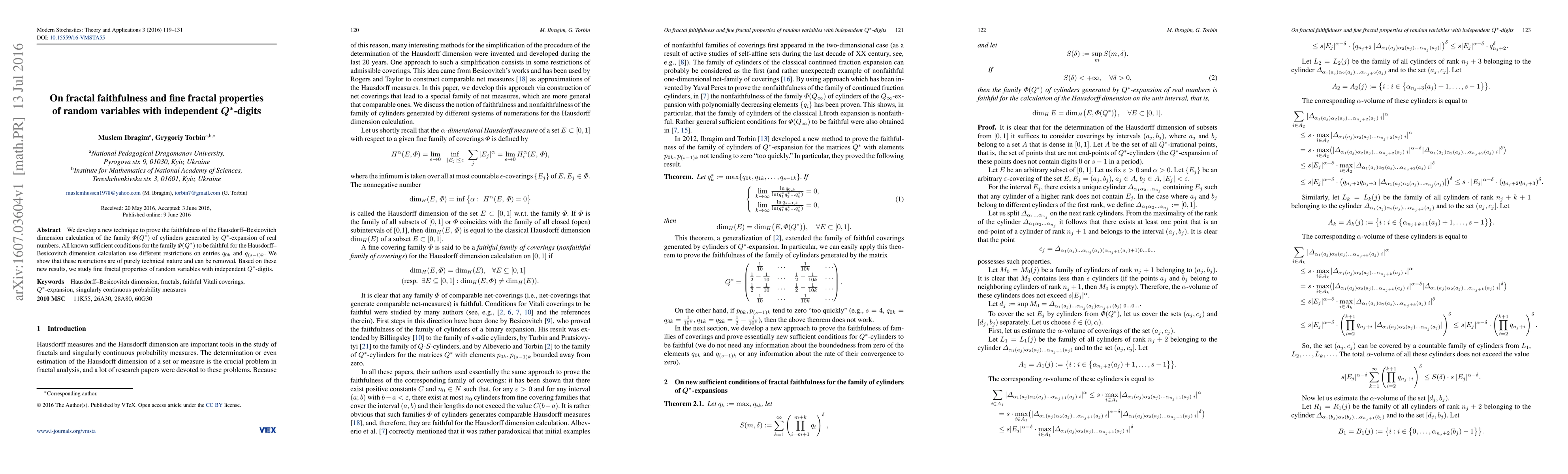 We develop a new technique to prove the faithfulness of the Hausdorff--Besicovitch dimension calculation of the family $\varPhi(Q^*)$ of cylinders generated by $Q^*$-expansion of real numbers. All known sufficient conditions for the family $\varPhi(Q^*)$ to be faithful for the Hausdorff--Besicovitch dimension calculation use different restrictions on entries $q_{0k}$ and $q_{(s-1)k}$. We show that these restrictions are of purely technical nature and can be removed. Based on these new results, we study fine fractal properties of random variables with independent $Q^*$-digits.