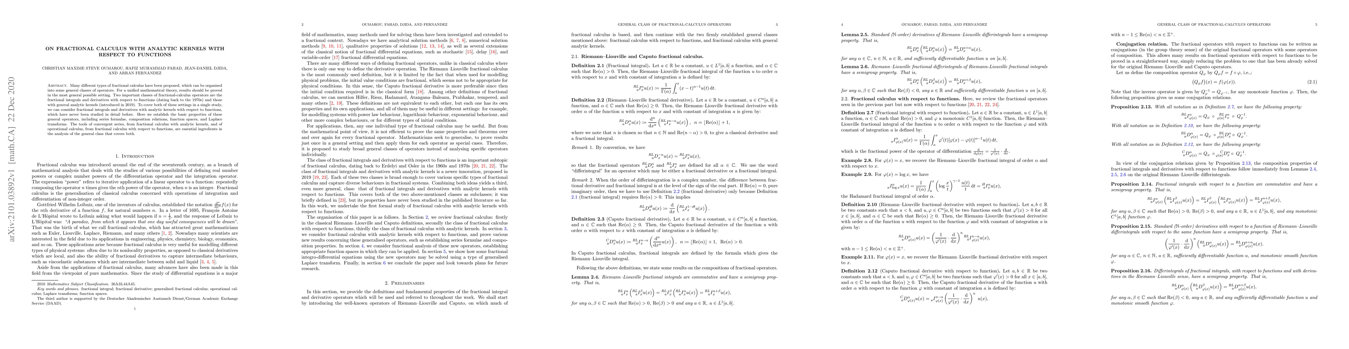 This paper explores fractional calculus operators combining analytic kernels with respect to functions, establishing foundational properties such as series formulae, composition relations, function spaces, and Laplace transforms. It integrates tools from convergent series and operational calculus to analyze a unified framework encompassing both fractional integrals and derivatives.