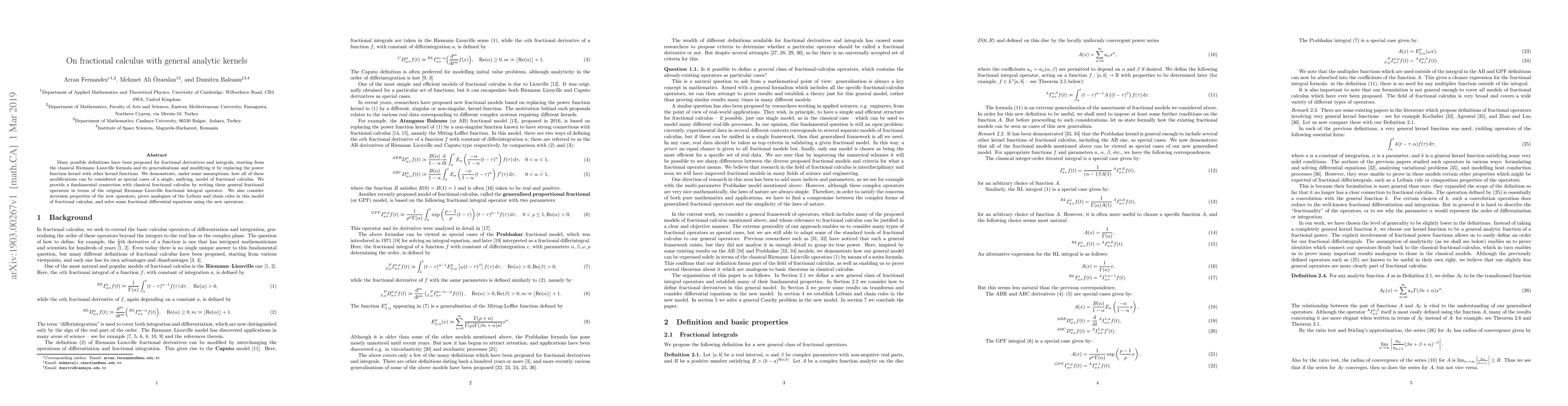 This paper unifies various fractional calculus definitions under a single model using general analytic kernels, showing their connection to the Riemann-Liouville operator. It also explores inversion properties, Leibniz and chain rules, and applies the new operators to solve fractional differential equations.