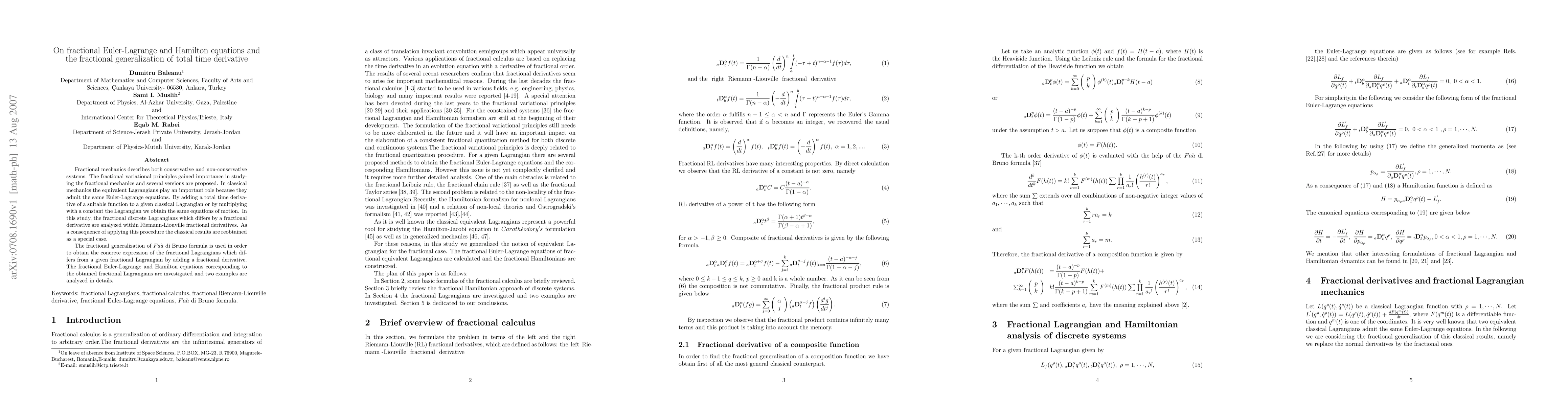 This paper explores fractional mechanics through fractional variational principles, focusing on fractional Euler-Lagrange and Hamilton equations. It analyzes fractional discrete Lagrangians using Riemann-Liouville fractional derivatives and demonstrates the classical results as special cases, employing the fractional generalization of the Faà di Bruno formula.