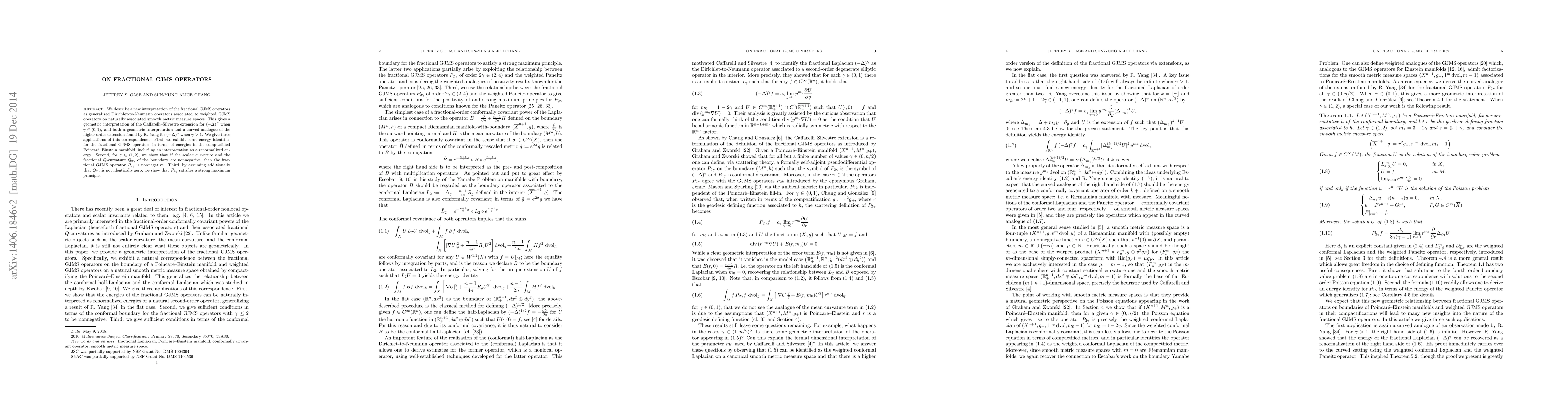 The paper describes a new interpretation of fractional GJMS operators as generalized Dirichlet-to-Neumann operators on smooth metric measure spaces, providing geometric interpretations for the Caffarelli-Silvestre extension and higher-order extensions.