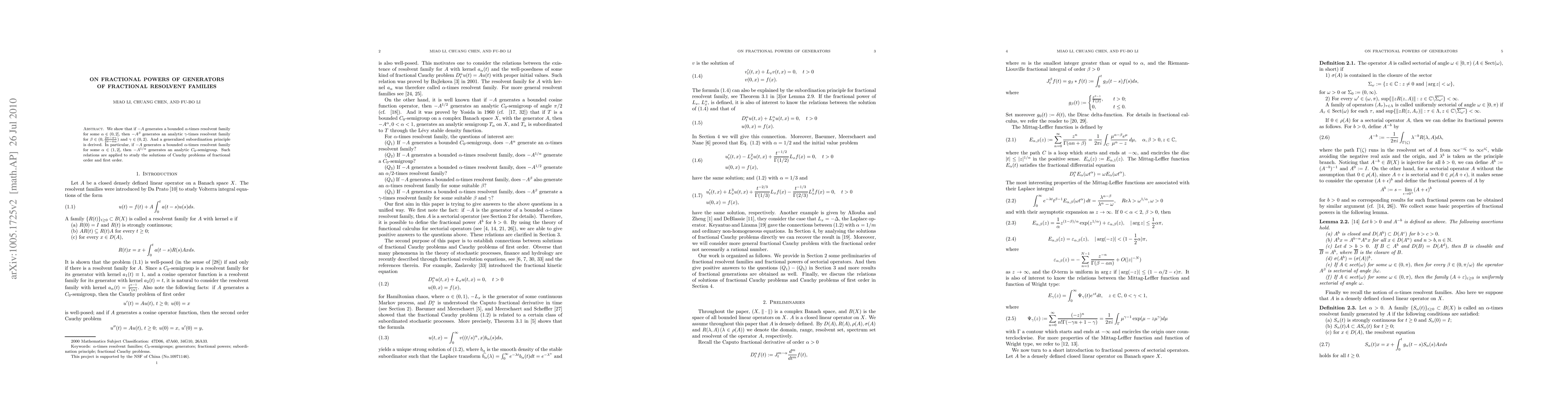We show that if $-A$ generates a bounded $\alpha$-times resolvent family for some $\alpha \in (0,2]$, then $-A^{\beta}$ generates an analytic $\gamma$-times resolvent family for $\beta \in(0,\frac{2\pi-\pi\gamma}{2\pi-\pi\alpha})$ and $\gamma \in (0,2)$. And a generalized subordination principle is derived. In particular, if $-A$ generates a bounded $\alpha$-times resolvent family for some $\alpha \in (1,2]$, then $-A^{1/\alpha}$ generates an analytic $C_0$-semigroup. Such relations are applied to study the solutions of Cauchy problems of fractional order and first order.