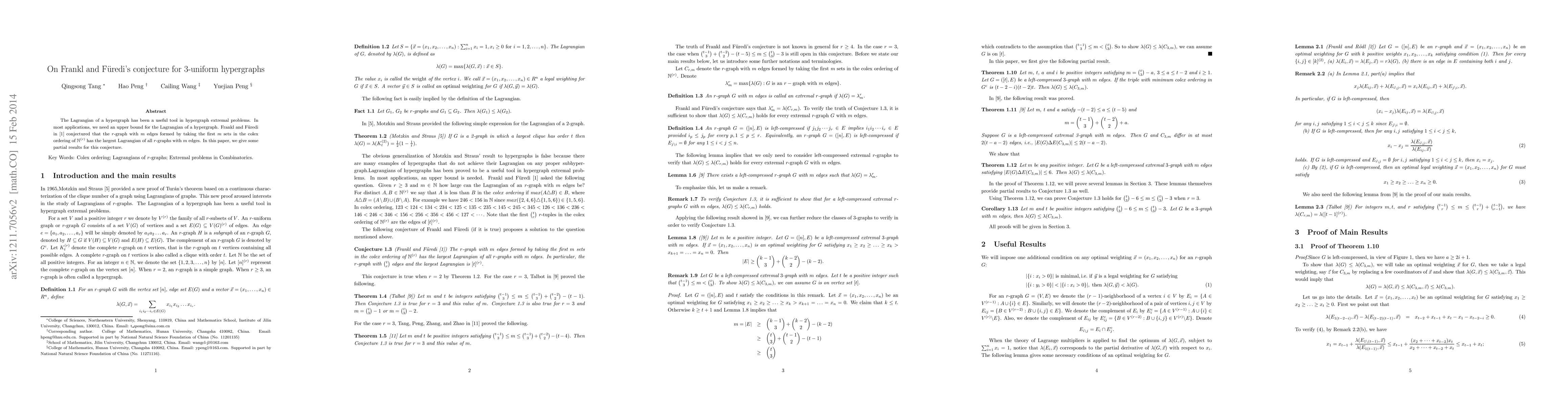 The Lagrangian of a hypergraph has been a useful tool in hypergraph extremal problems. In most applications, we need an upper bound for the Lagrangian of a hypergraph. Frankl and Furedi in \cite{FF} conjectured that the $r$-graph with $m$ edges formed by taking the first $m$ sets in the colex ordering of ${\mathbb N}^{(r)}$ has the largest Lagrangian of all $r$-graphs with $m$ edges. In this paper, we give some partial results for this conjecture.