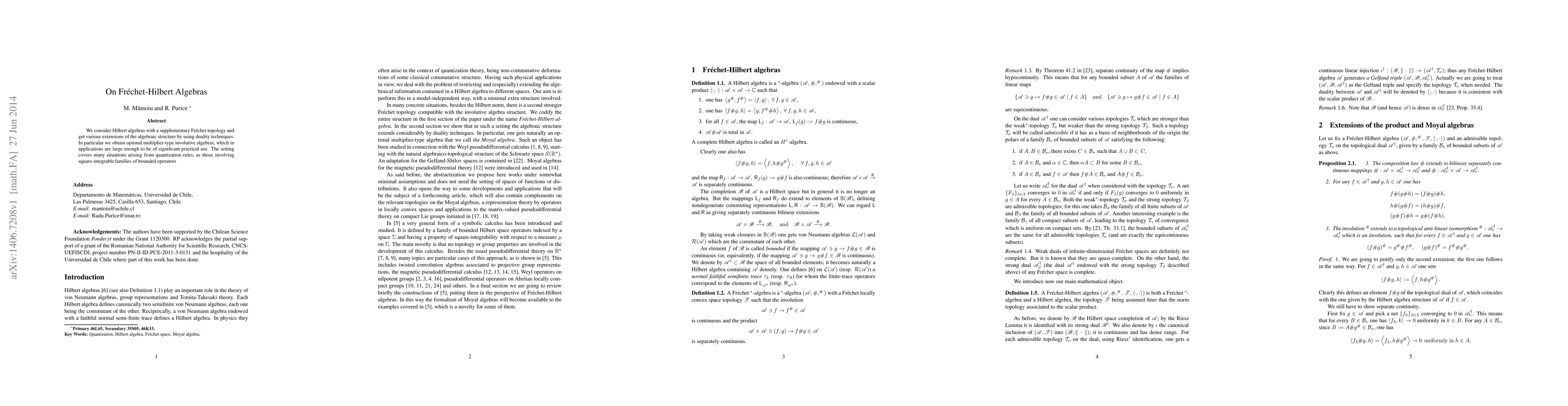 This paper investigates Hilbert algebras endowed with supplementary Fréchet topology, extending their algebraic structure via duality techniques to yield optimal multiplier-type involutive algebras. These extensions are particularly useful in practical applications, especially in contexts involving quantization rules and square-integrable operator families.