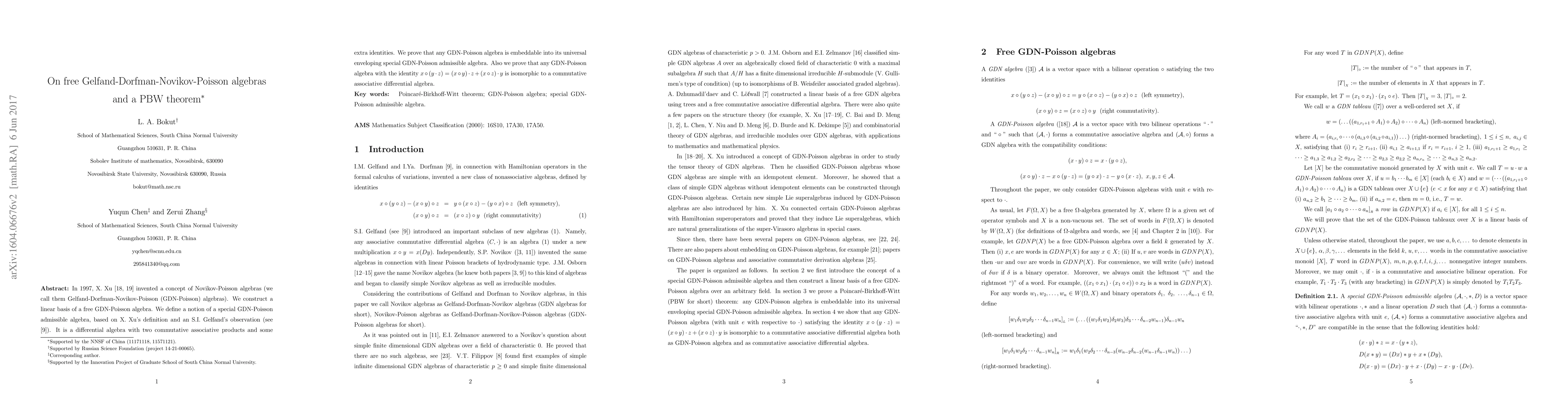 This paper constructs a linear basis for free Gelfand-Dorfman-Novikov-Poisson (GDN-Poisson) algebras and proves that any GDN-Poisson algebra embeds into its universal enveloping special GDN-Poisson admissible algebra, establishing a PBW theorem for these structures.