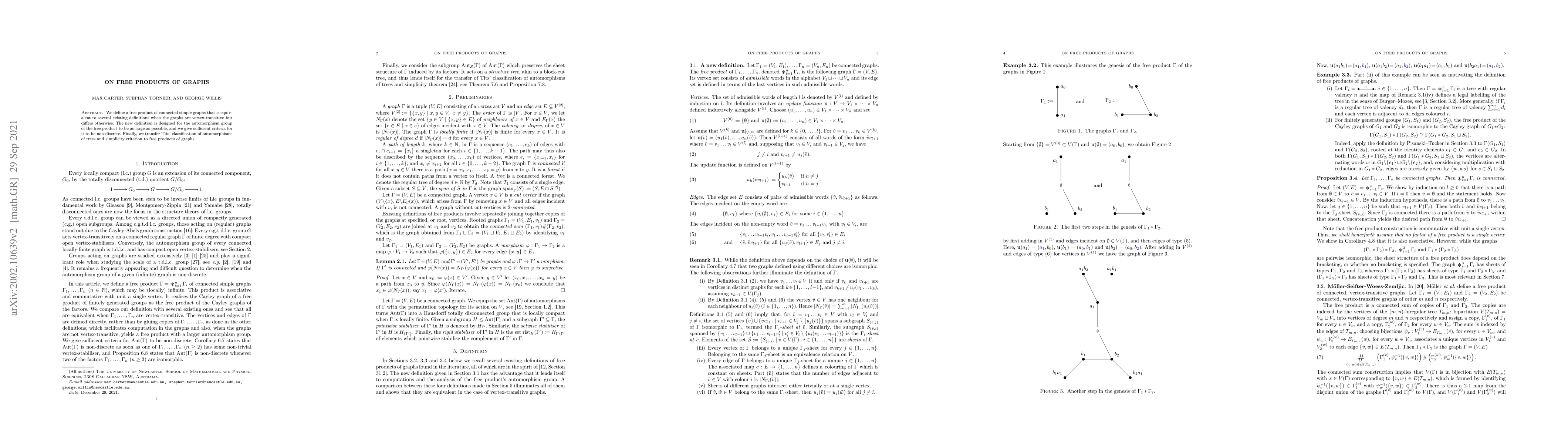 We define a free product of connected simple graphs that is equivalent to several existing definitions when the graphs are vertex-transitive but differs otherwise. The new definition is designed for the automorphism group of the free product to be as large as possible, and we give sufficient criteria for it to be non-discrete. Finally, we transfer Tits' classification of automorphisms of trees and simplicity criterion to free products of graphs.