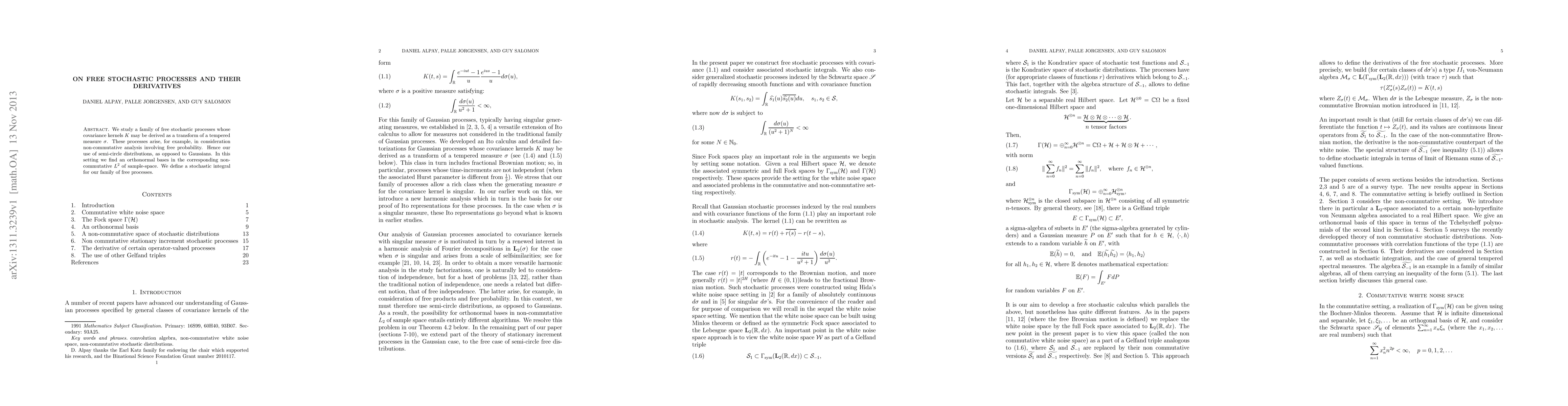 This paper explores free stochastic processes with covariance kernels derived from a tempered measure, focusing on non-commutative analysis using semi-circle distributions instead of Gaussians. It establishes an orthonormal basis in the non-commutative $L^2$ space and defines a stochastic integral for these processes.