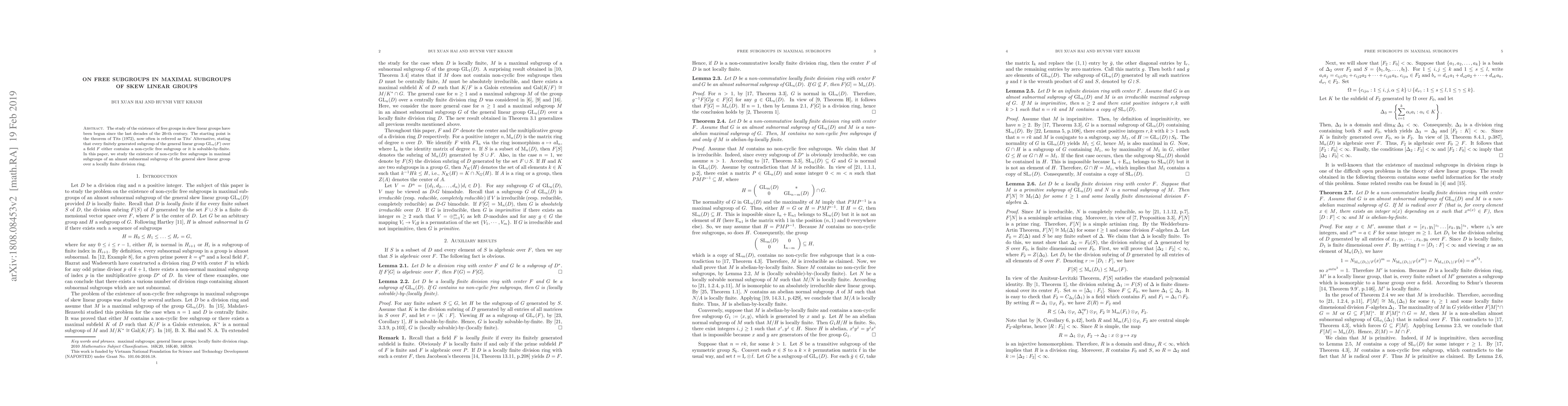 The study of the existence of free groups in skew linear groups have been begun since the last decades of the 20-th century. The starting point is the theorem of Tits (1972), now often is referred as Tits' Alternative, stating that every finitely generated subgroup of the general linear group $\GL_n(F)$ over a field $F$ either contains a non-cyclic free subgroup or it is solvable-by-finite. In this paper, we study the existence of non-cyclic free subgroups in maximal subgroups of an almost subnormal subgroup of the general skew linear group over a locally finite division ring.