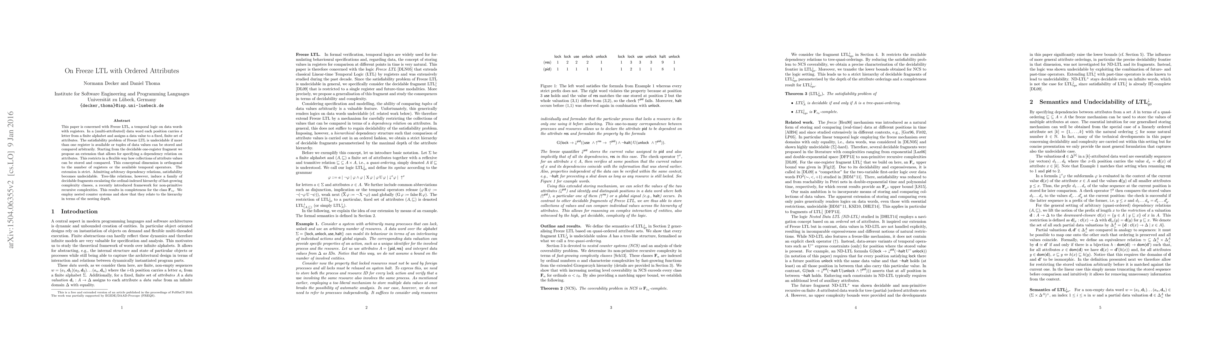 This paper explores Freeze LTL, a temporal logic for data words with registers, and proposes an extension that specifies dependency relations on attributes, leading to decidable fragments within a complexity hierarchy up to the class ${\bf F}_{\epsilon_0}$. The undecidability arises when arbitrary dependency relations are allowed.