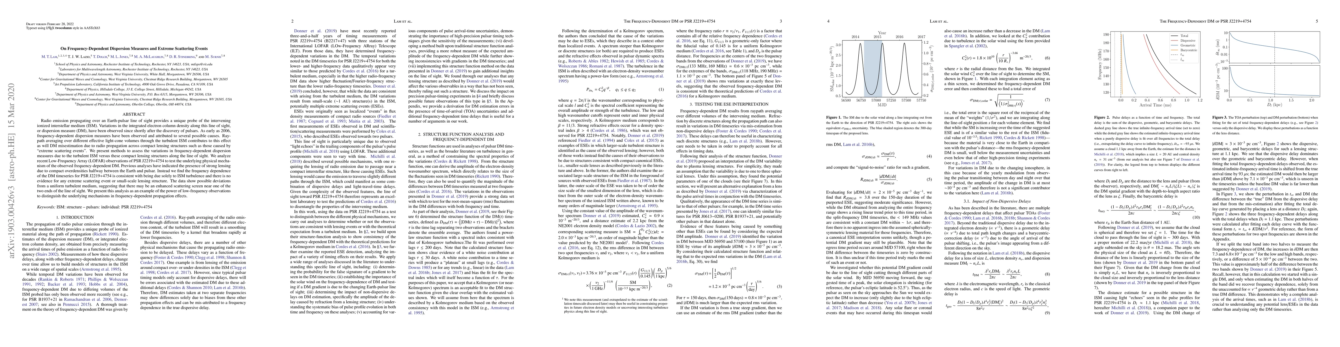 Researchers analyzed PSR J2219+4754 data to determine if frequency-dependent dispersion measures were caused by turbulent interstellar medium or compact lensing structures, finding that ISM turbulence was the primary cause.