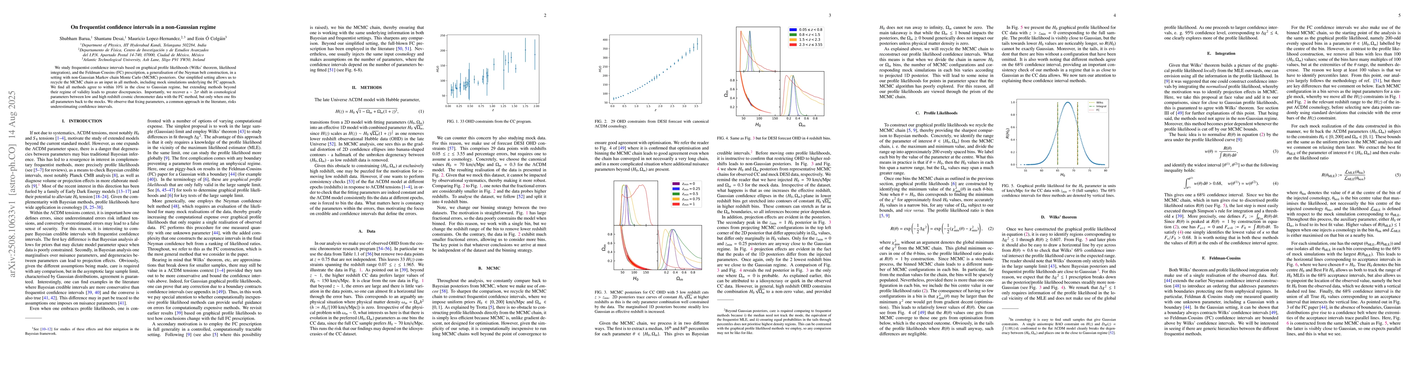 The paper studies frequentist confidence intervals using graphical profile likelihoods, Wilks' theorem, likelihood integration, and the Feldman-Cousins (FC) prescription in a non-Gaussian regime with MCMC posteriors. The authors compare these methods in a cosmological setting, focusing on cosmic chronometer data.