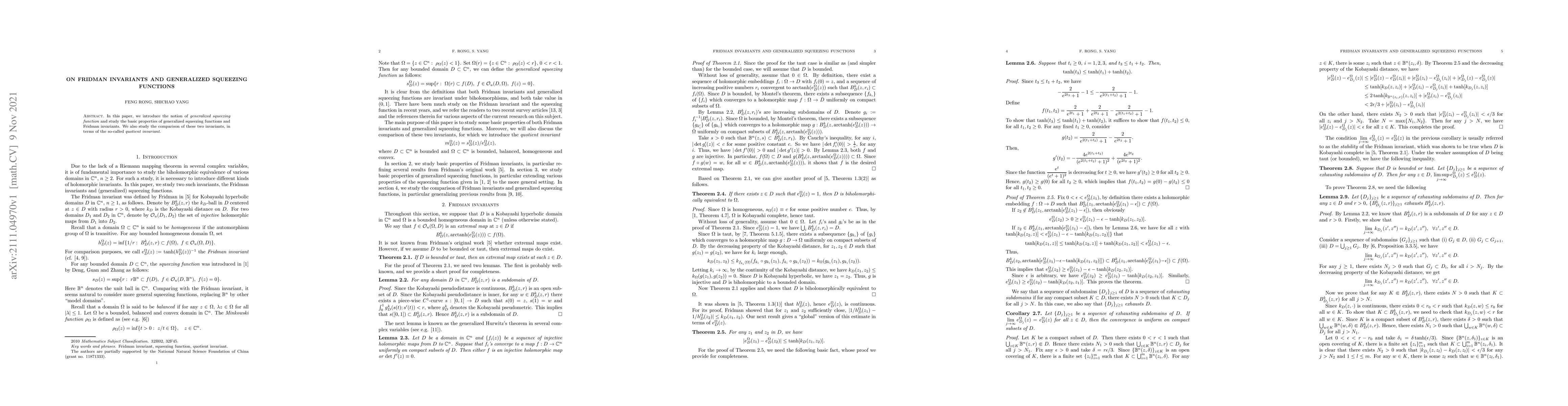 This paper introduces generalized squeezing functions and explores their properties alongside Fridman invariants, focusing on the comparison of these two invariants through a new quotient invariant.