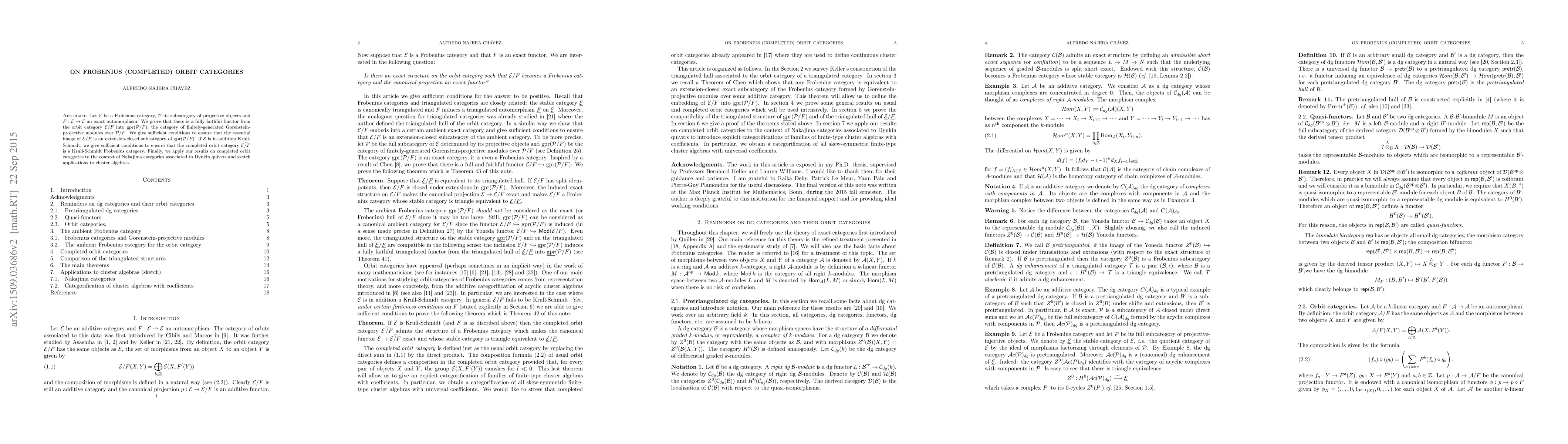 Let ${\mathcal E}$ be a Frobenius category, ${\mathcal P}$ its subcategory of projective objects and $F:{\mathcal E} \to {\mathcal E}$ an exact automorphism. We prove that there is a fully faithful functor from the orbit category ${\mathcal E}/F$ into $\operatorname{gpr}({\mathcal P}/F)$, the category of finitely-generated Gorenstein-projective modules over ${\mathcal P}/F$. We give sufficient conditions to ensure that the essential image of ${\mathcal E}/F$ is an extension-closed subcategory of $\operatorname{gpr}({\mathcal P}/F)$. If ${\mathcal E}$ is in addition Krull-Schmidt, we give sufficient conditions to ensure that the completed orbit category ${\mathcal E} \ \widehat{\!\! /} F$ is a Krull-Schmidt Frobenius category. Finally, we apply our results on completed orbit categories to the context of Nakajima categories associated to Dynkin quivers and sketch applications to cluster algebras.