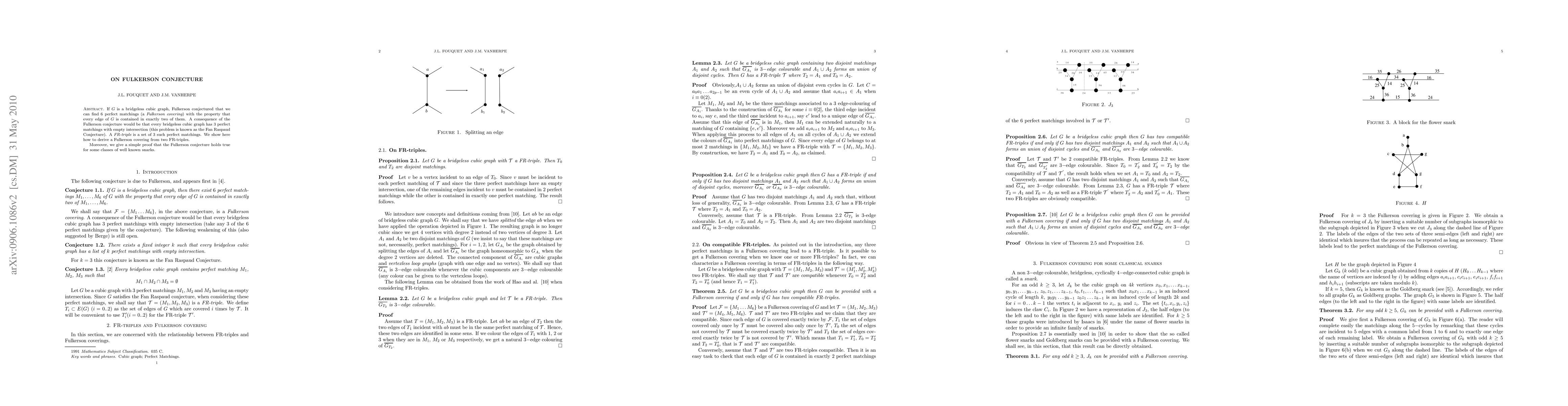 Researchers have found a way to derive a perfect matching covering from two Fan Raspaud triples, supporting Fulkerson's conjecture that every bridgeless cubic graph has 6 perfect matchings with no intersecting edges.