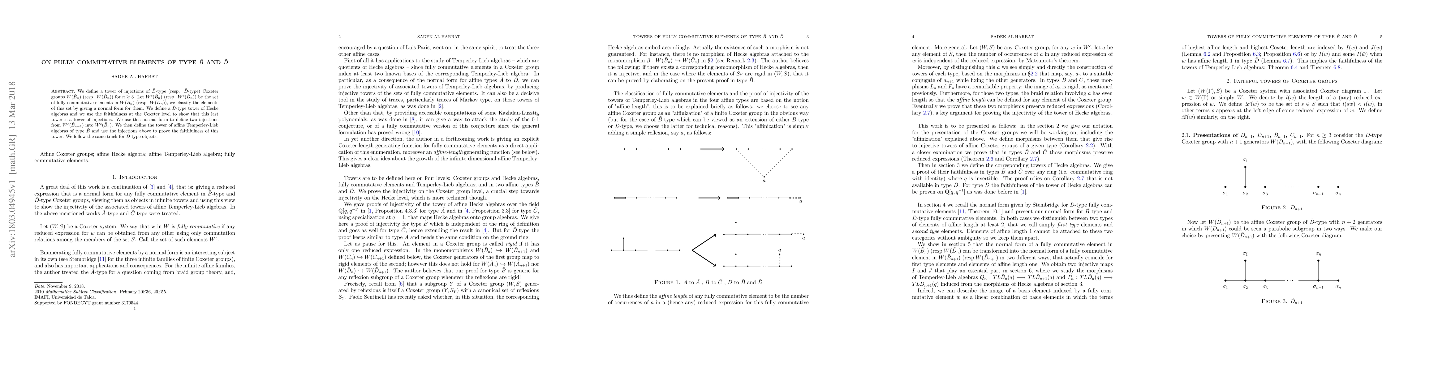 The paper defines a series of injections for Coxeter groups of $\tilde{B}$ and $\tilde{D}$ types, classifies fully commutative elements within these groups using a normal form, and demonstrates the faithfulness of towers of Hecke and affine Temperley-Lieb algebras through these classifications.