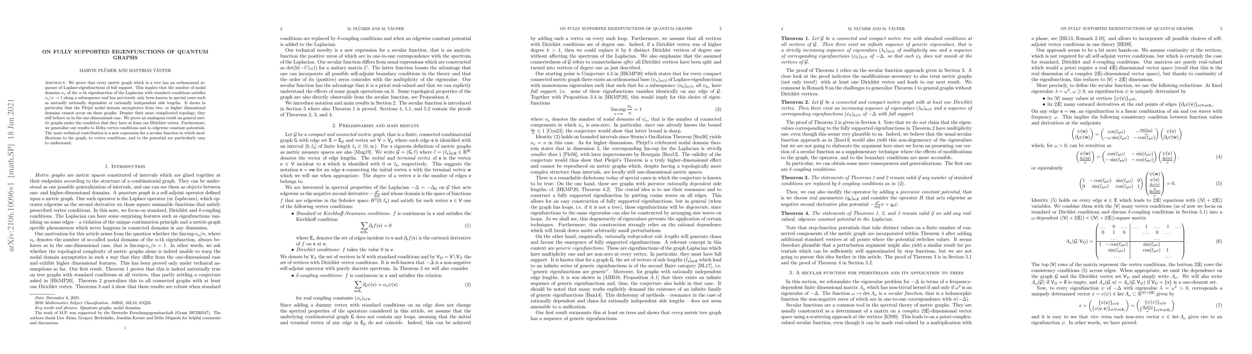 We prove that every metric graph which is a tree has an orthonormal sequence of Laplace-eigenfunctions of full support. This implies that the number of nodal domains $\nu_n$ of the $n$-th eigenfunction of the Laplacian with standard conditions satisfies $\nu_n/n \to 1$ along a subsequence and has previously only been known in special cases such as mutually rationally dependent or rationally independent side lengths. It shows in particular that the Pleijel nodal domain asymptotics from two- or higher dimensional domains cannot occur on these graphs: Despite their more complicated topology, they still behave as in the one-dimensional case. We prove an analogous result on general metric graphs under the condition that they have at least one Dirichlet vertex. Furthermore, we generalize our results to Delta vertex conditions and to edgewise constant potentials. The main technical contribution is a new expression for a secular function in which modifications to the graph, to vertex conditions, and to the potential are particularly easy to understand.