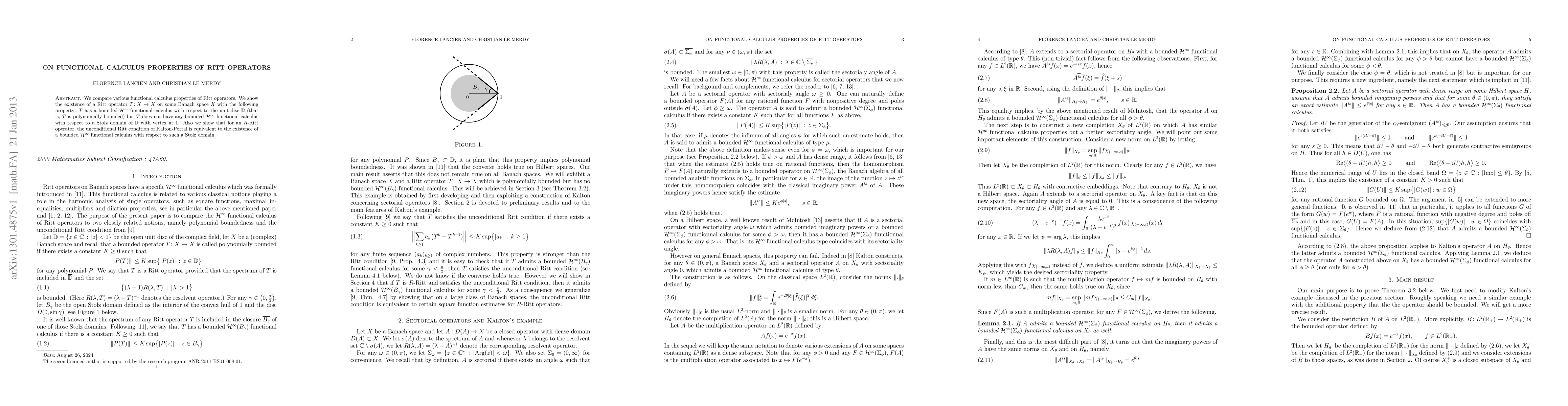 We compare various functional calculus properties of Ritt operators. We show the existence of a Ritt operator T : X --> X on some Banach space X with the following property: T has a bounded $\H^\infty$ functional calculus with respect to the unit disc $\D$ (that is, T is polynomially bounded) but T does not have any bounded $\H^\infty$ functional calculus with respect to a Stolz domain of $\D$ with vertex at 1. Also we show that for an R-Ritt operator, the unconditional Ritt condition of Kalton-Portal is equivalent to the existence of a bounded $\H^\infty$ functional calculus with respect to such a Stolz domain.